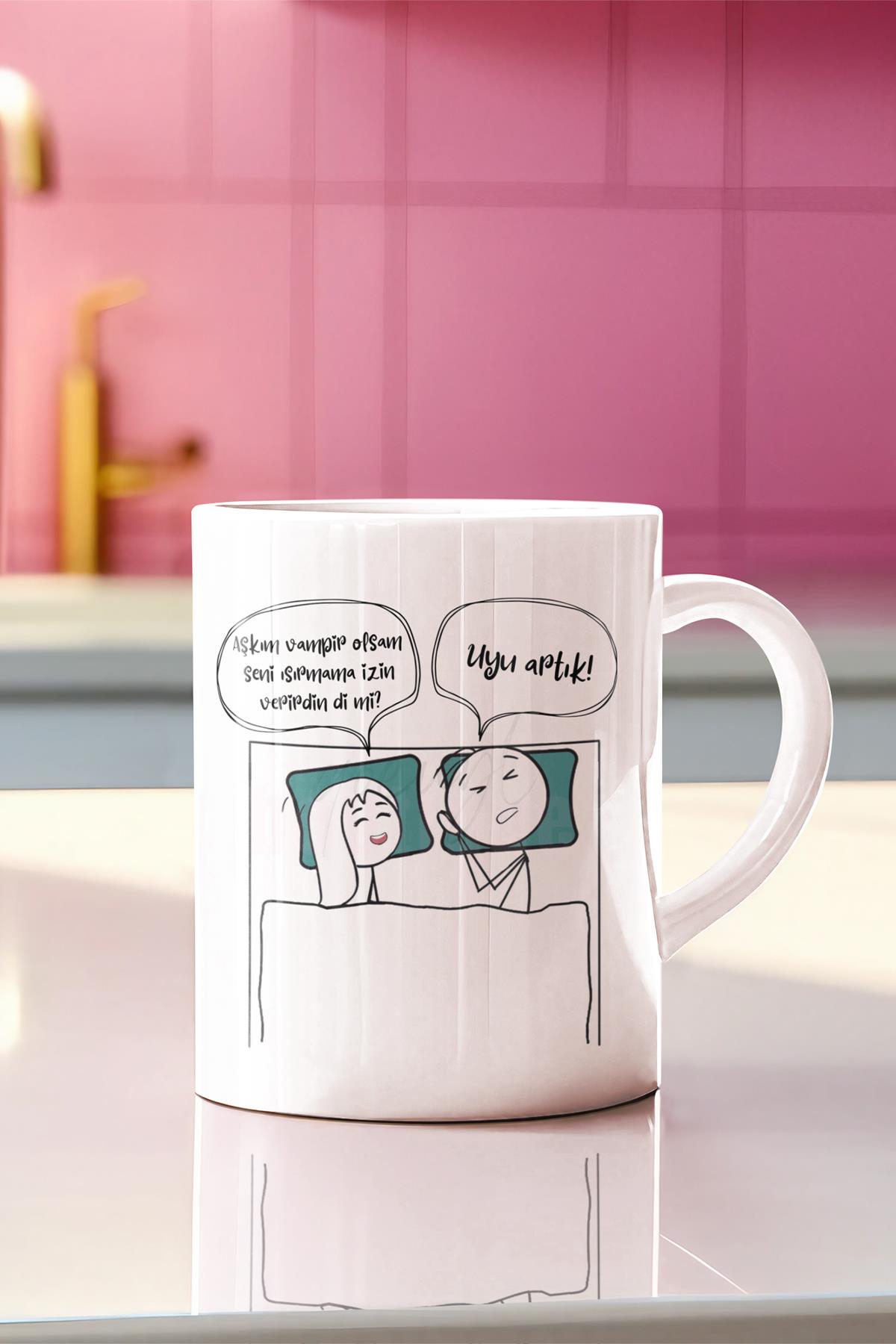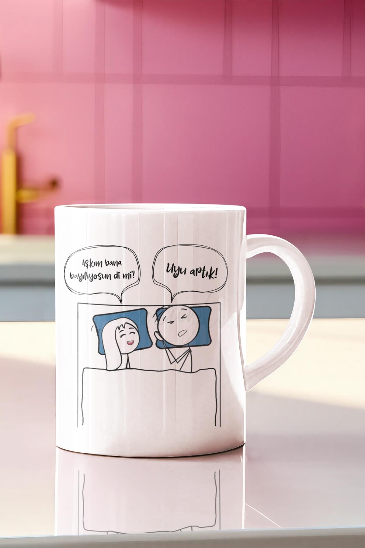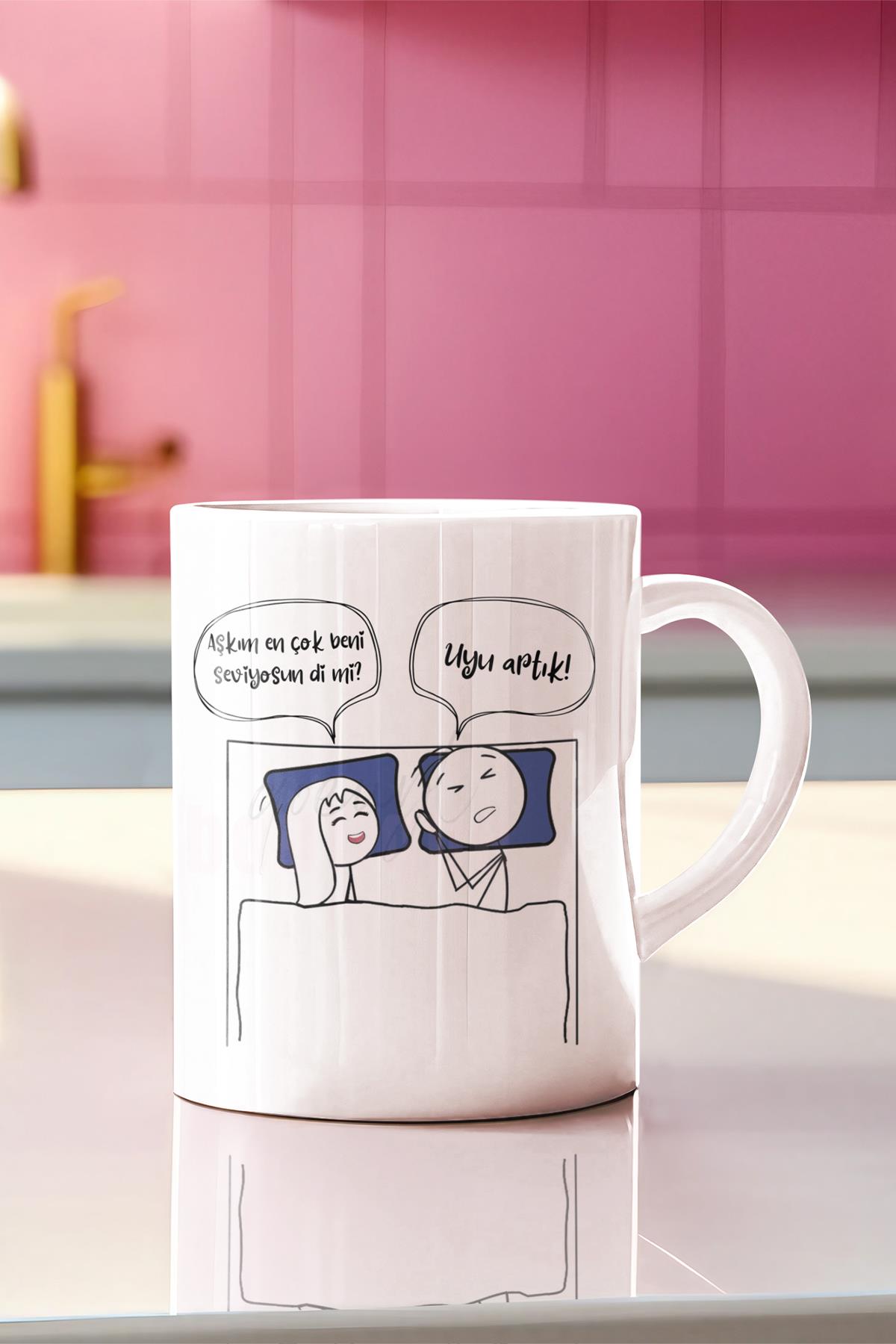 2025 Aşkım Uyu Artık Serisi Komik Yazı Baskılı Eş,Karı-Koca, Sevgili Hediyelik Eğlenceli Kupa Bardak