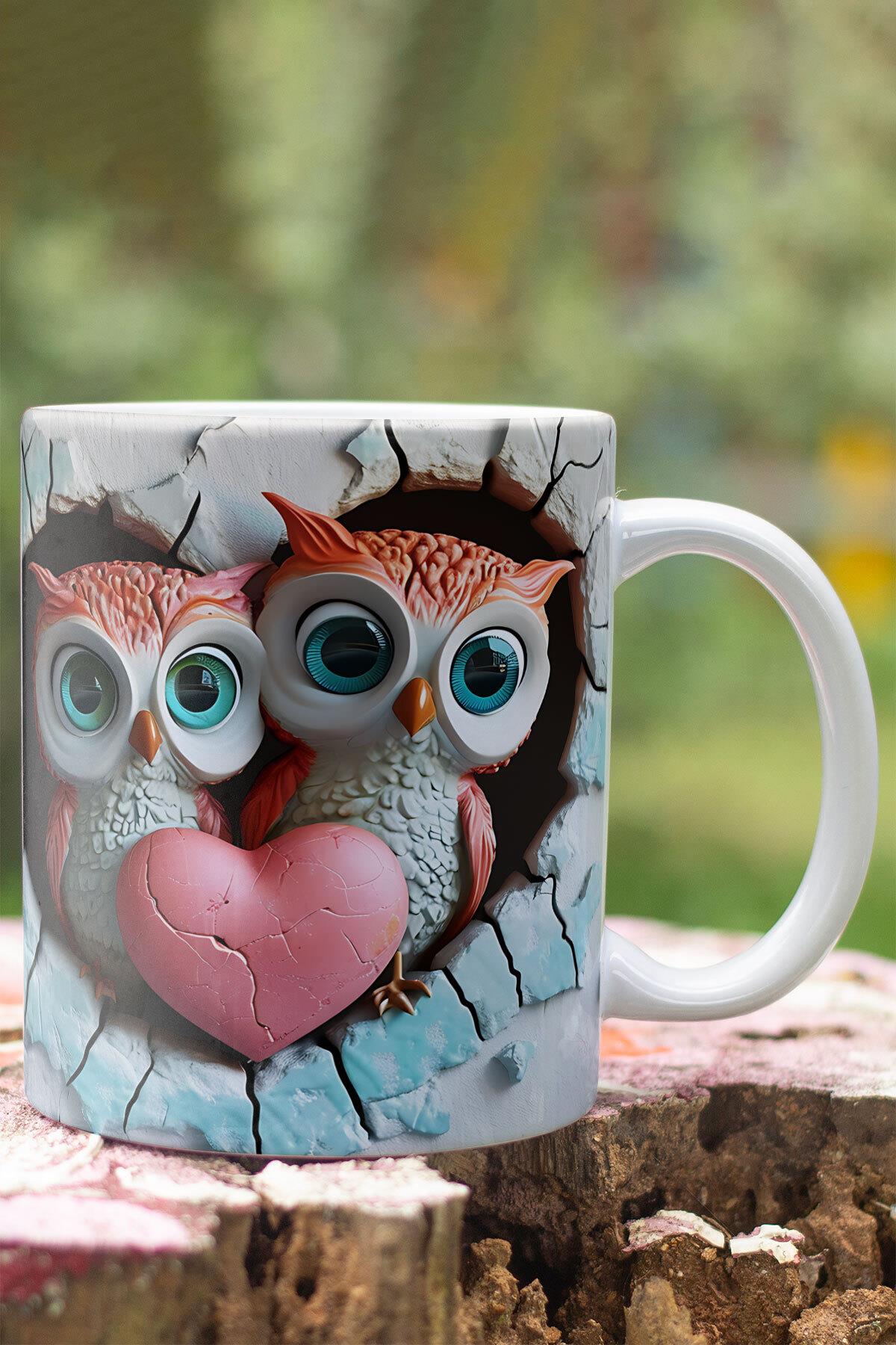3D Görünümlü Sevimli Baykuş Hediyelik No:1 3D Tasarım Baskılı Kupa Bardak Mug