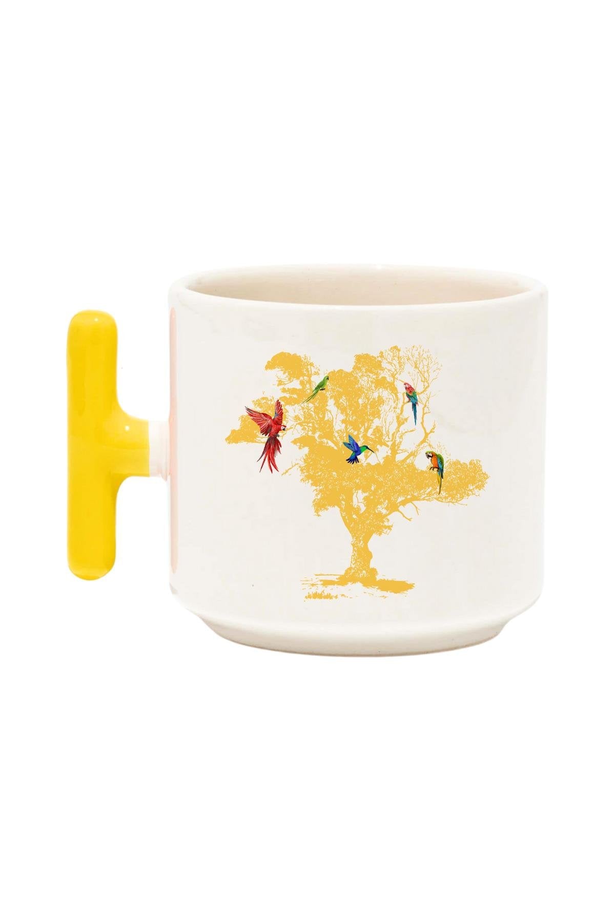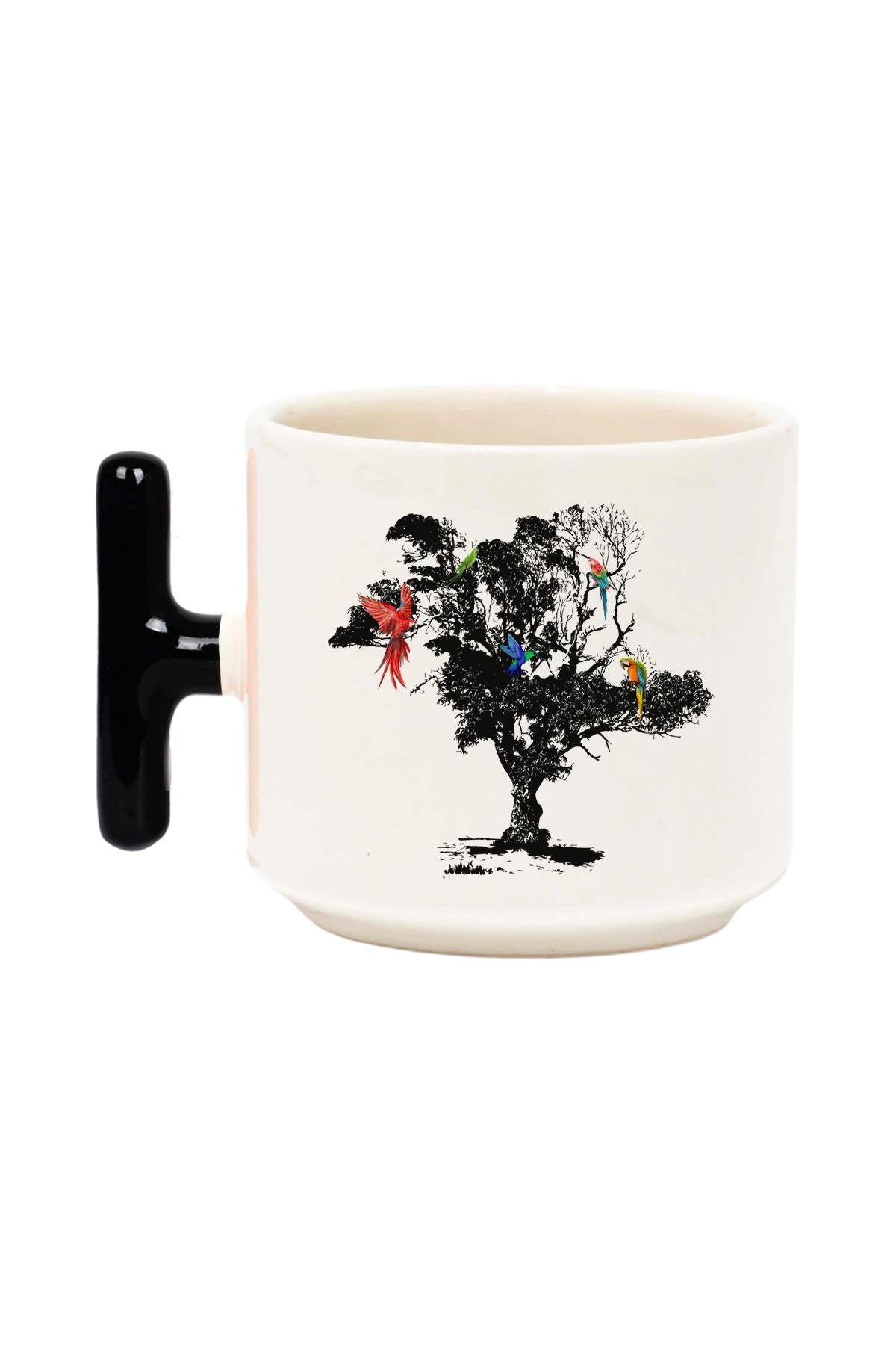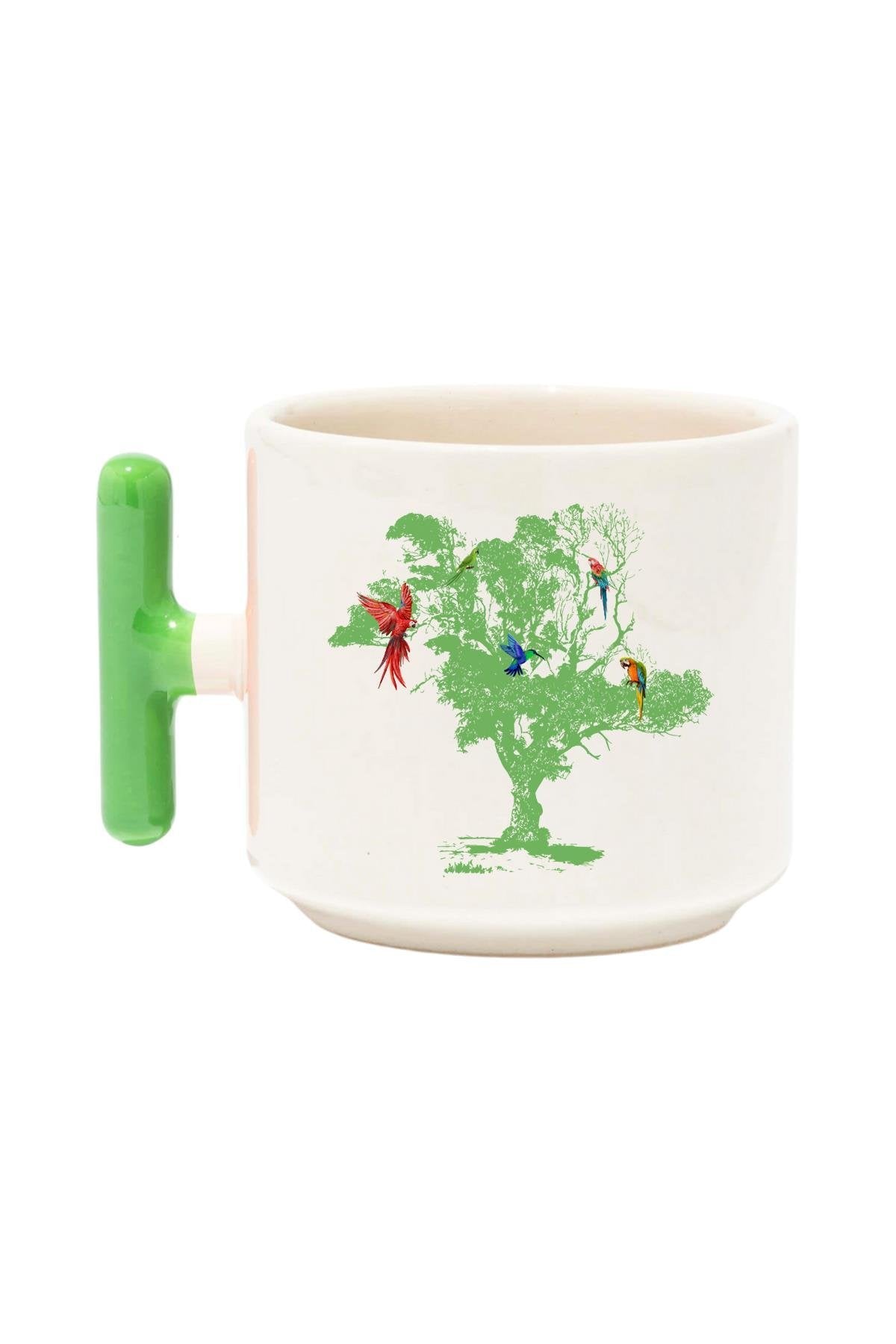 Ağaç Dallarında Papağanlar Baskılı Renkli T Kulplu Hediyelik Latte Fincanı Kupa Bardak