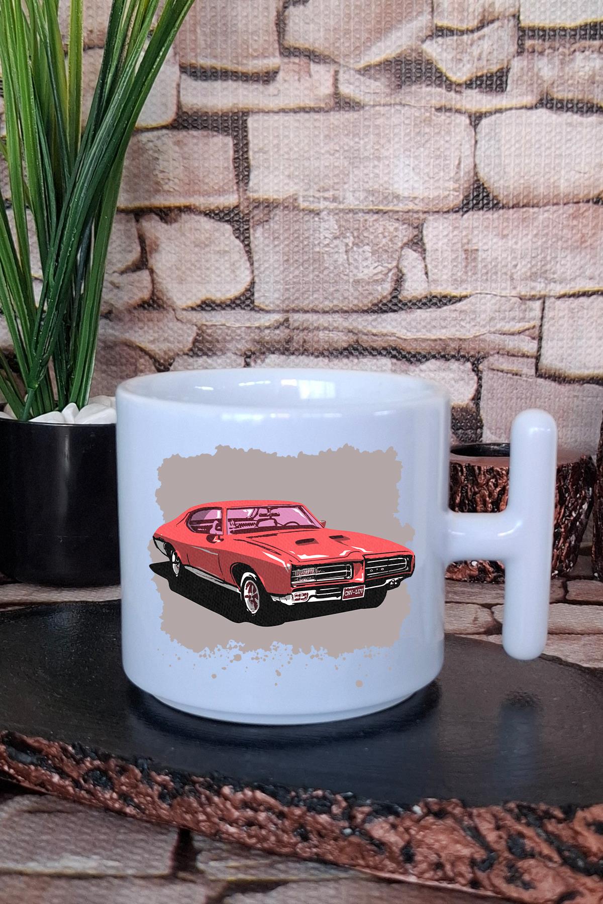 Araba Baskılı T Kulplu Latte Fincanı Kupa Bardak