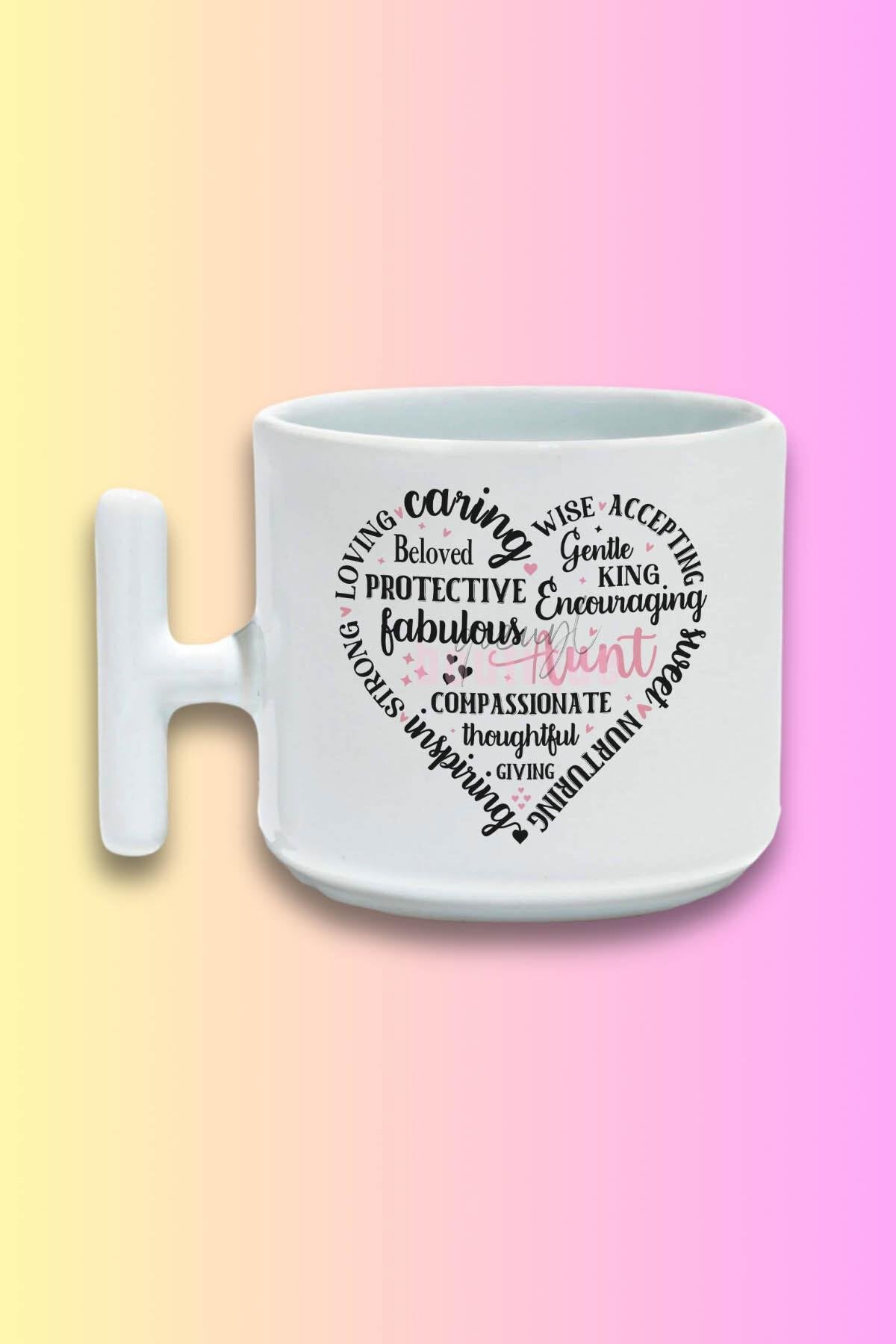 Aunt Heart Shape Baskılı Hala Teyze Hediyelik T Kulplu Latte Fincanı Kupa Bardak