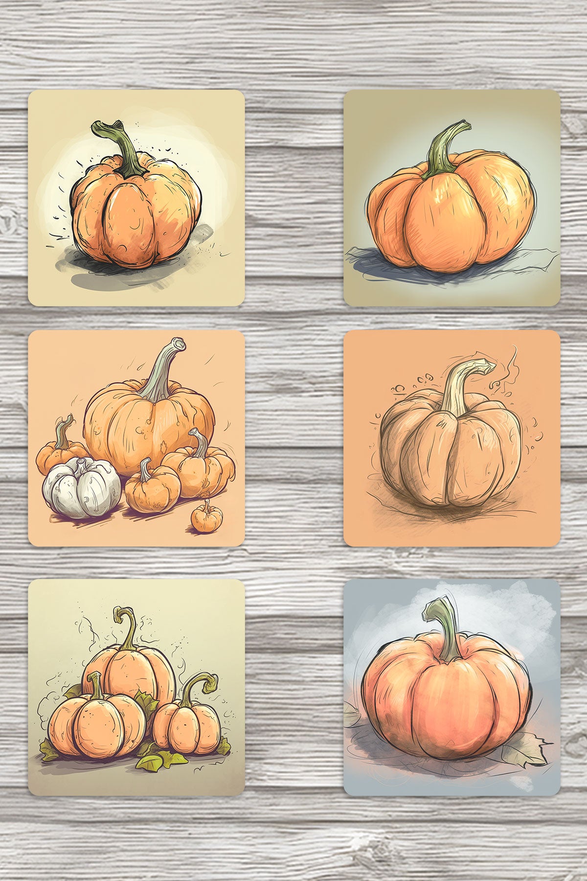 Balkabağı Çizimleri No:1 Baskılı 6'lı Set Dekoratif Ahşap Kare Bardak Altlığı