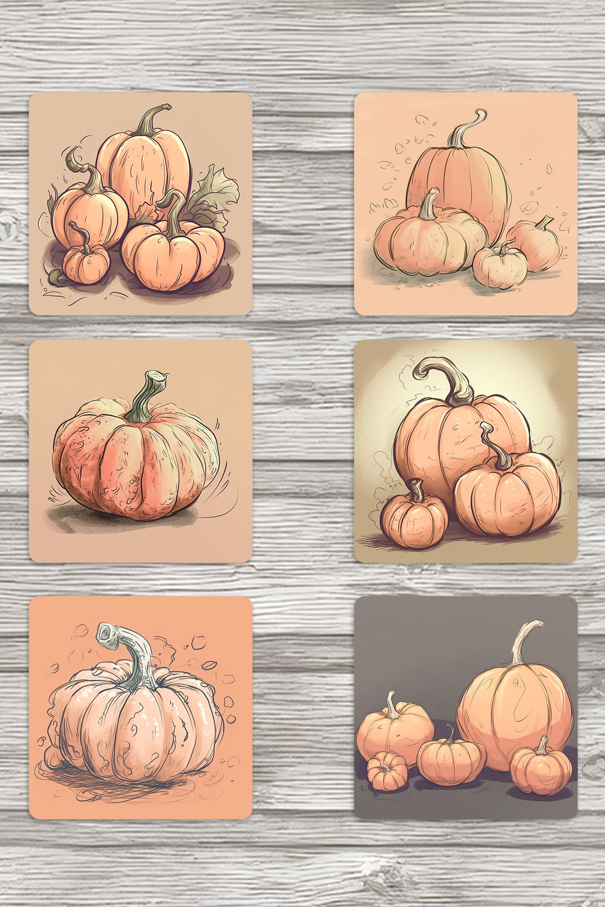Balkabağı Çizimleri No:2 Baskılı 6'lı Set Dekoratif Ahşap Kare Bardak Altlığı