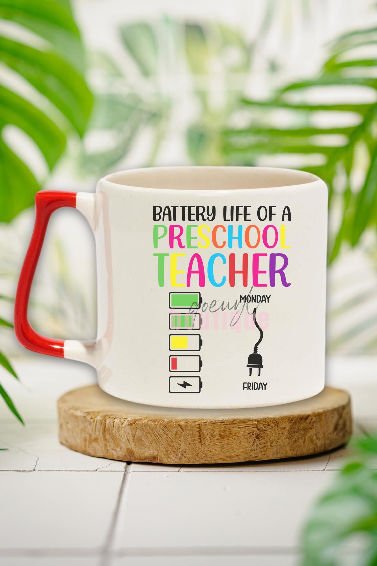 Battery Life Of A Preschool Yazılı Komik Okul Öncesi Hediyelik Kulplu Kupa Bardak