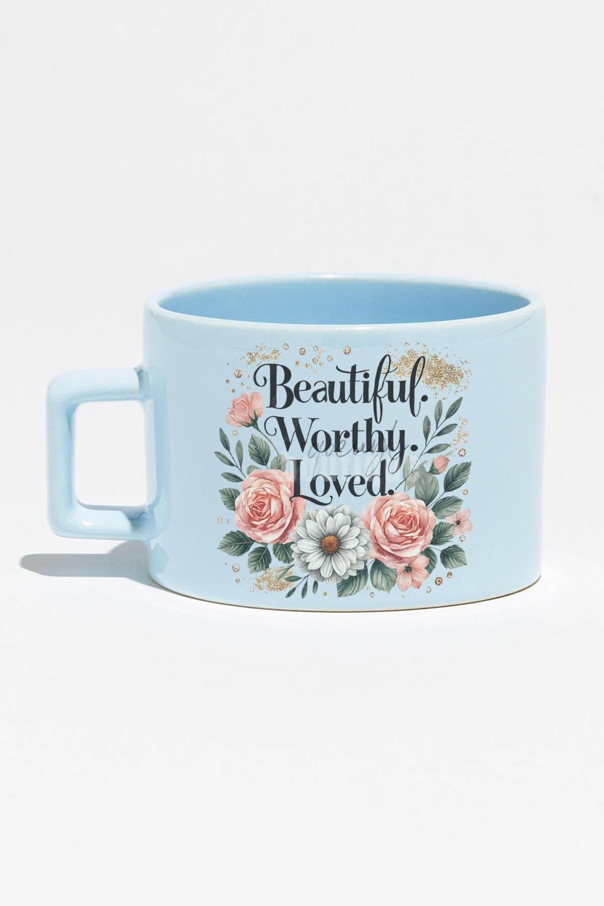 Beautiful Worthy Mother Baskılı Anneler Günü Hediyelik Mavi Dikdörtgen Kulp Fincan Kupa Bardak