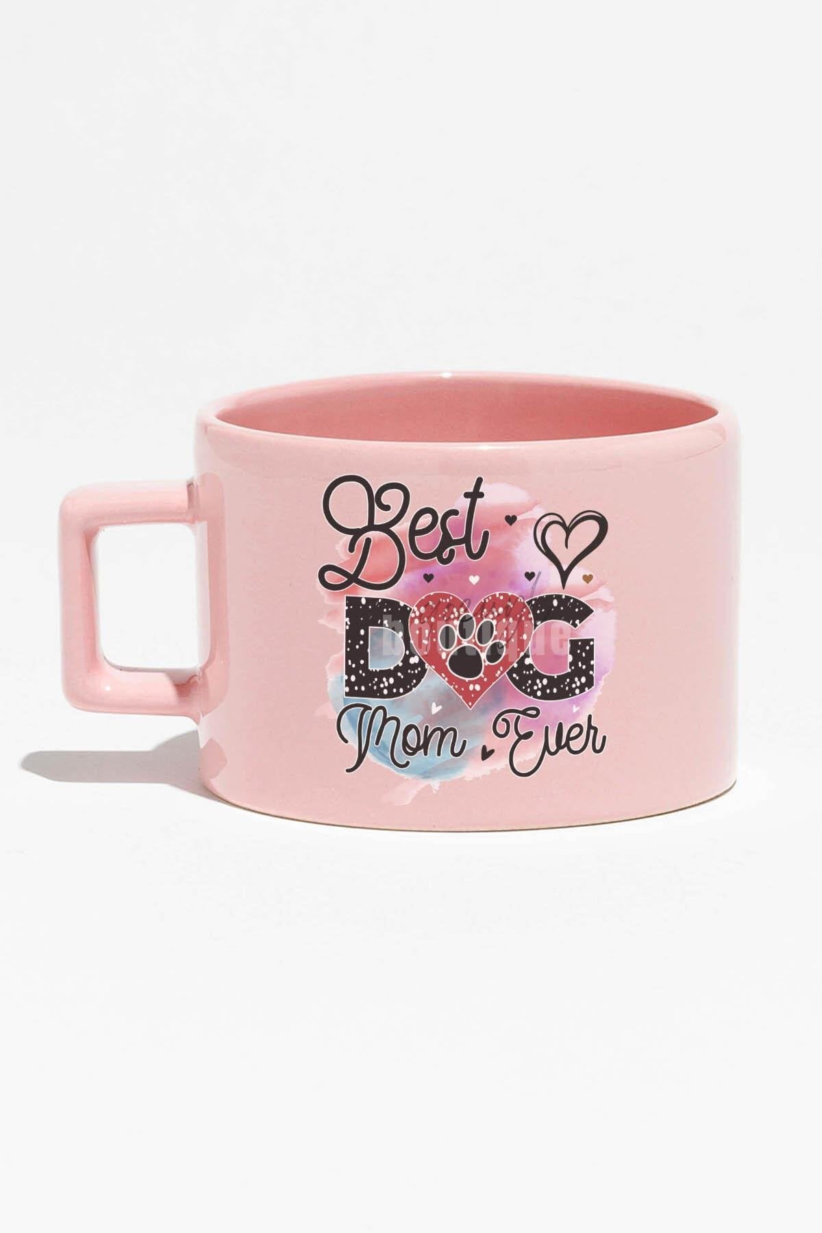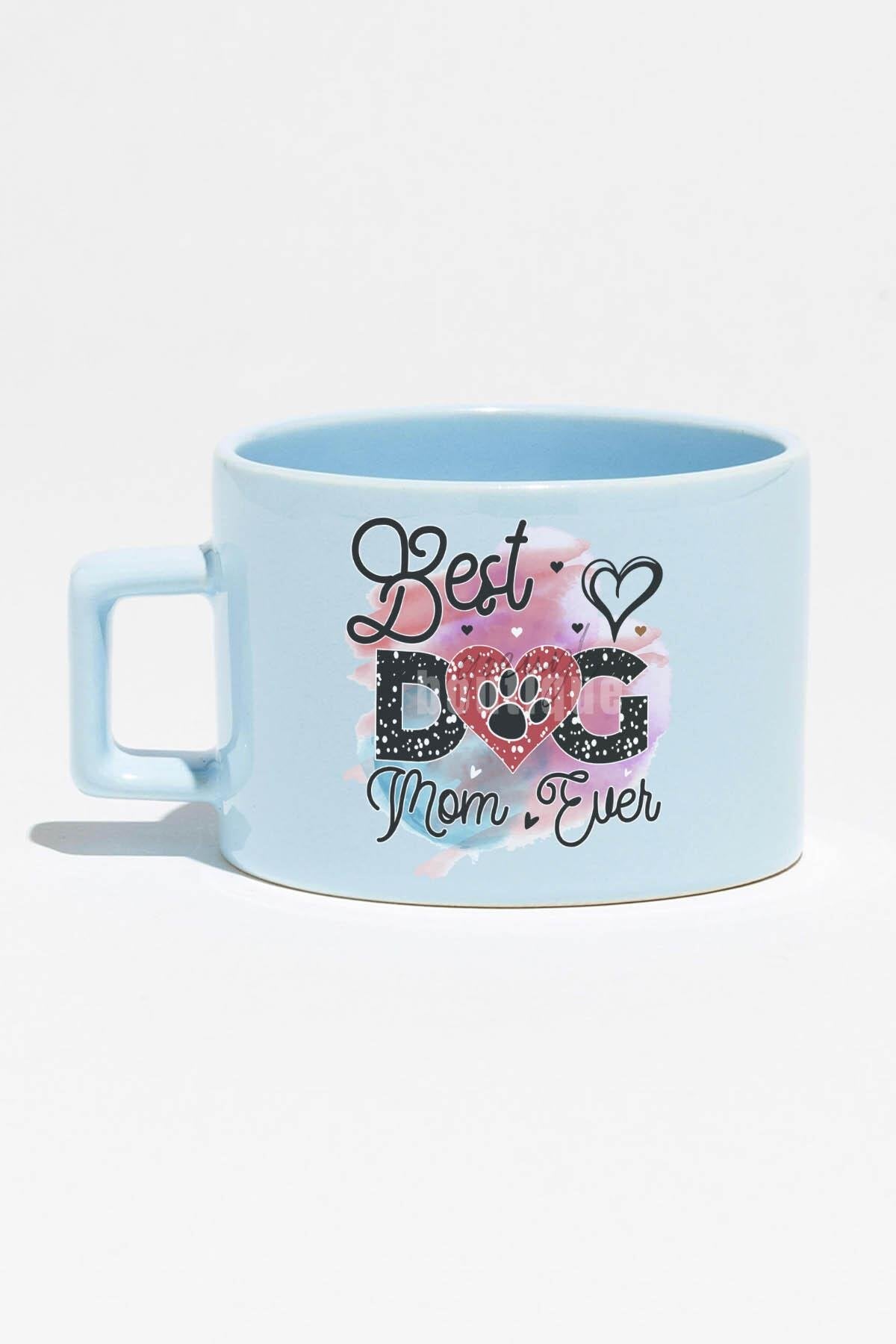 Best Dog Mom Ever No:3 Baskılı Anneler Günü Hediyelik Mavi Dikdörtgen Kulplu Fincan Kupa Bardak