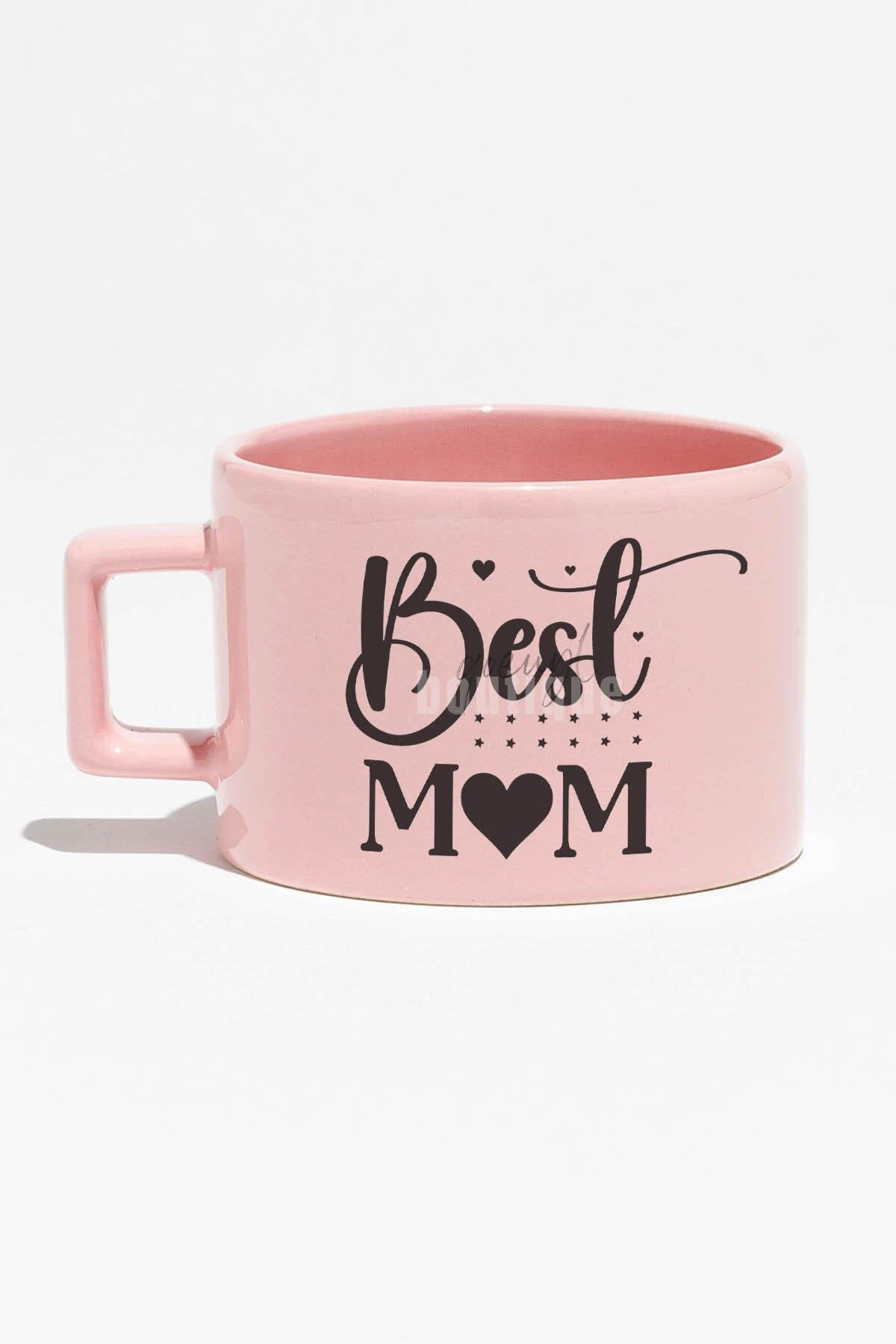 Best Mom Baskılı Anneler Günü Hediyelik Mavi Dikdörtgen Kulplu Fincan Kupa Bardak