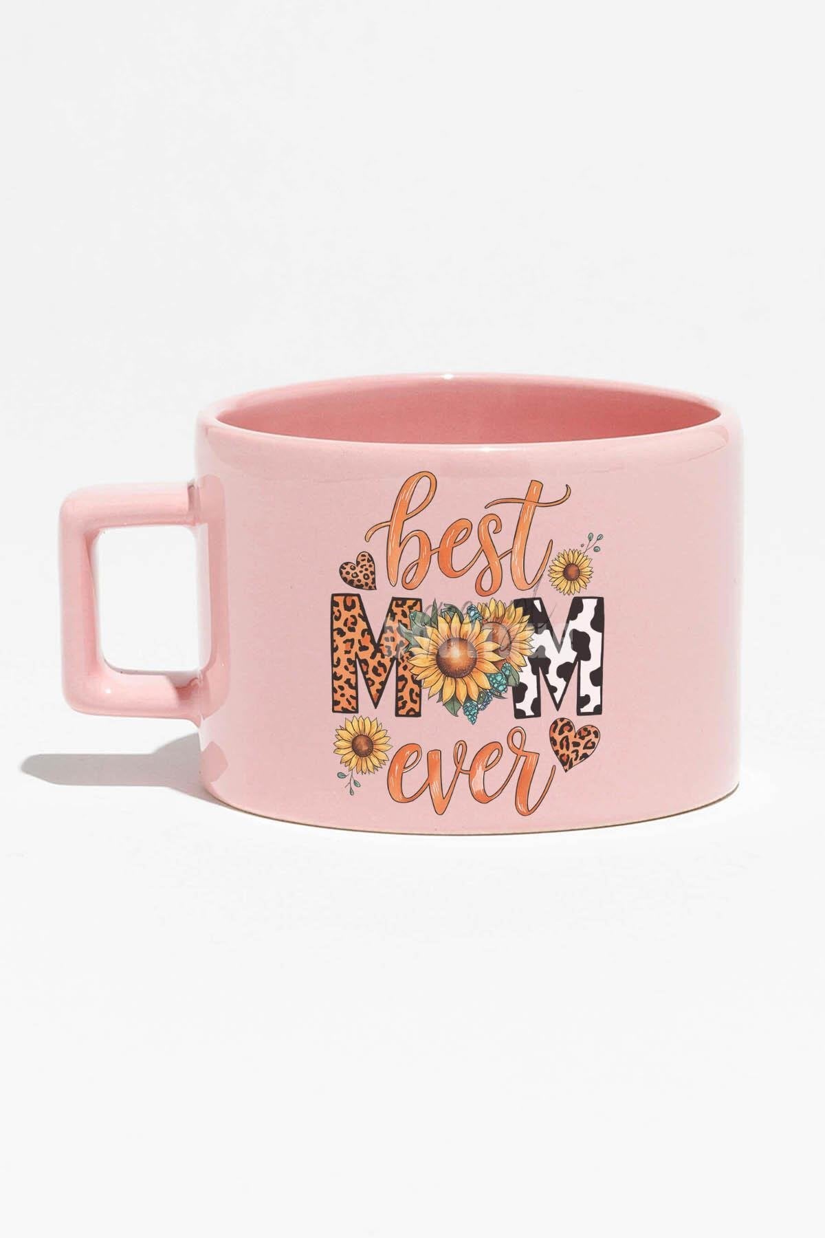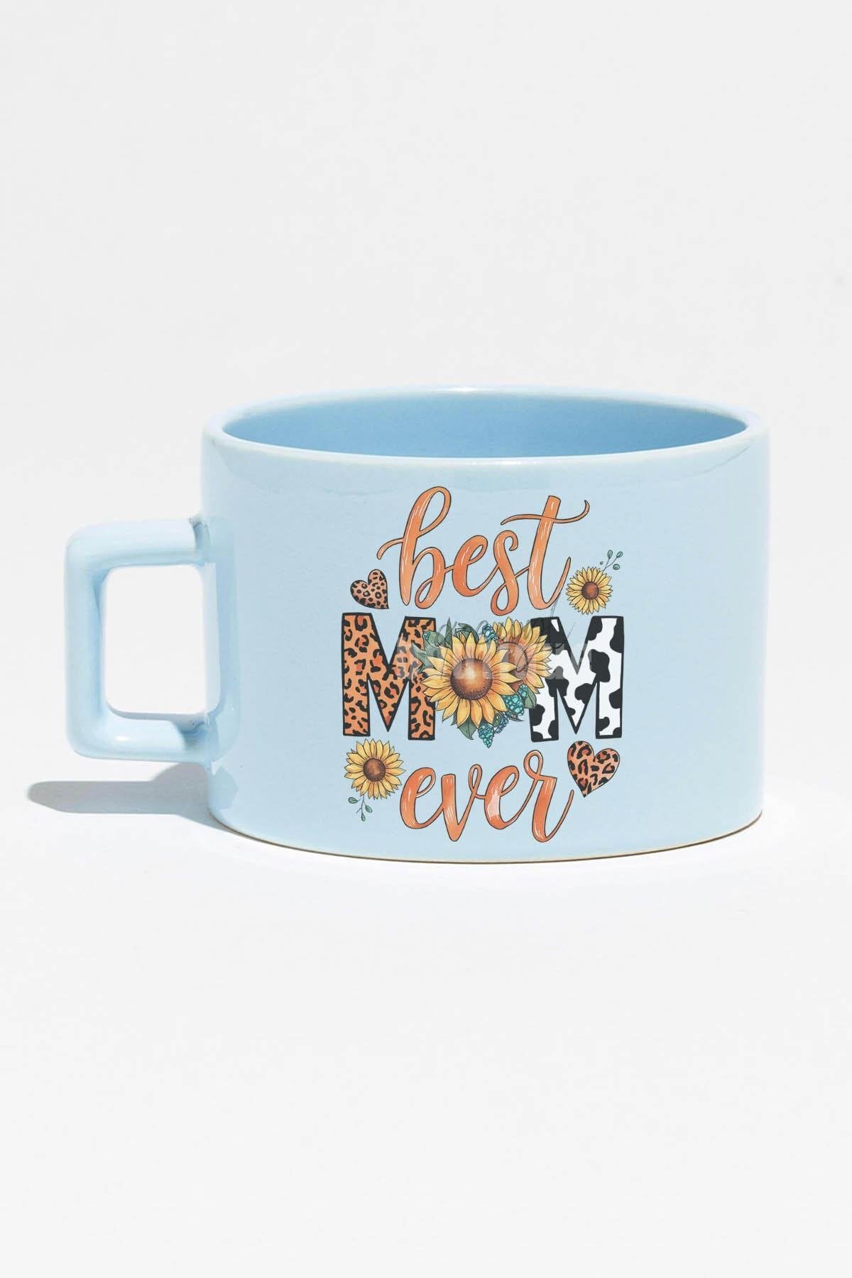 Best Mom Ever Baskılı Anneler Günü Hediyelik Mavi Dikdörtgen Kulplu Fincan Kupa Bardak