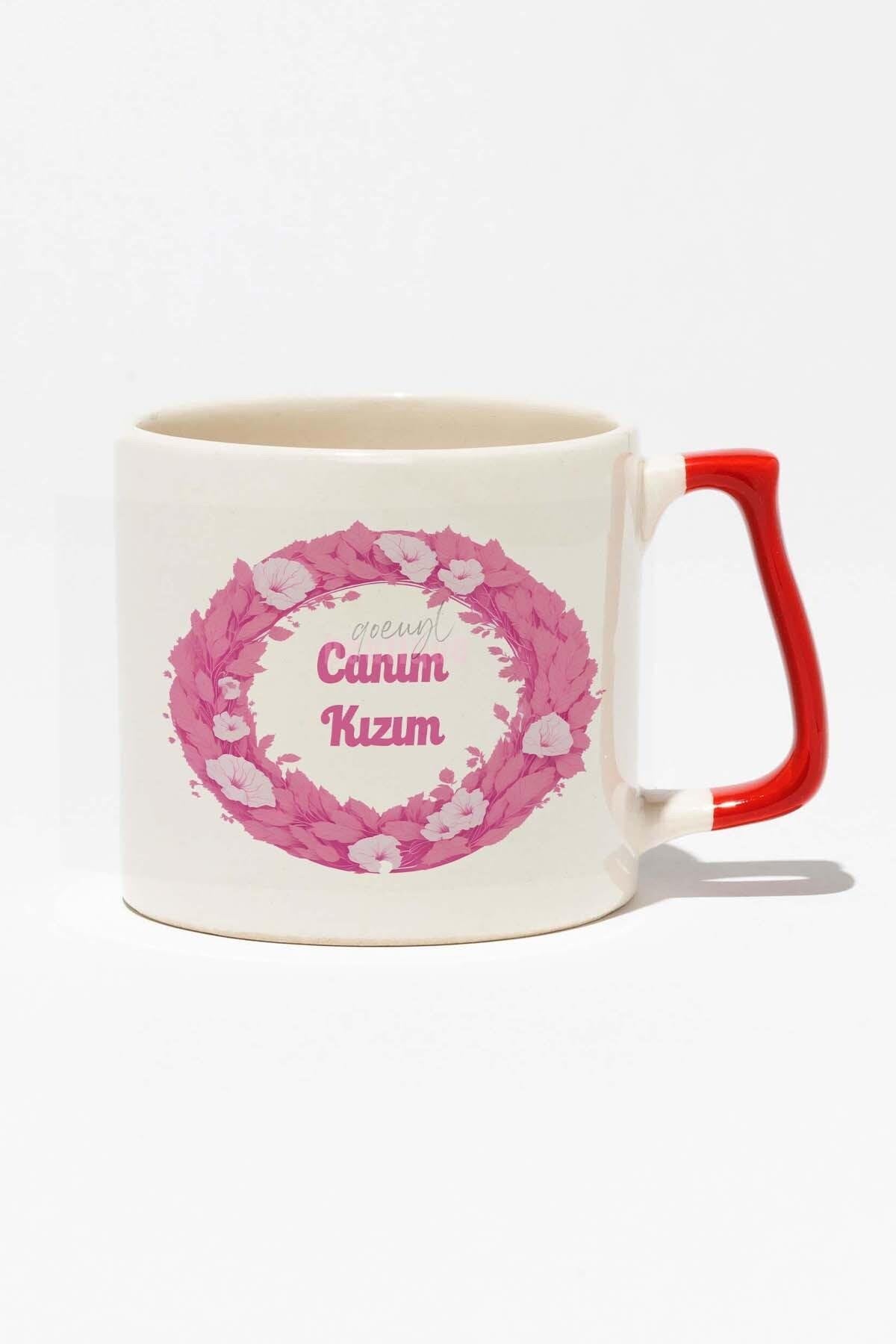 Canım Kızım Baskılı Doğum Günü Hediyelik Baskılı Kırmızı Kulplu Modern Seramik Kupa