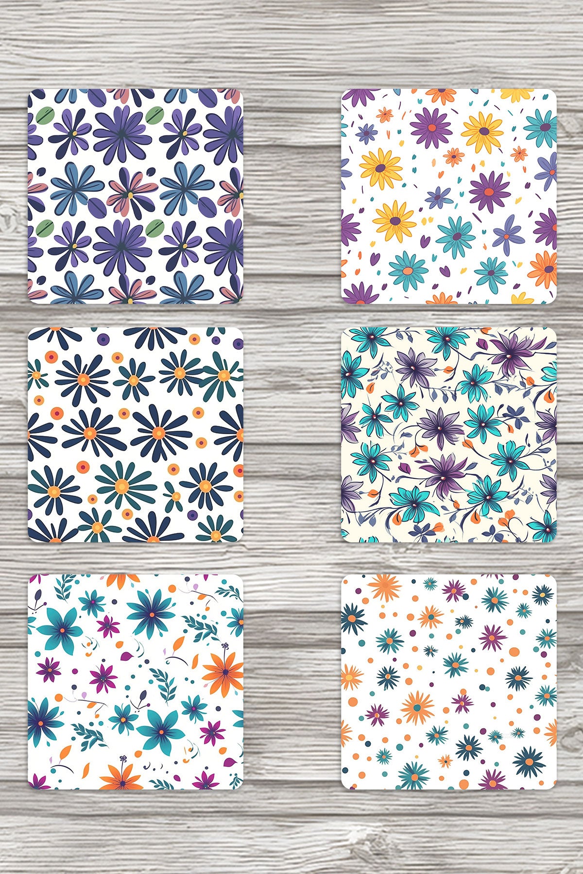 Çiçek Desenleri No:2 Baskılı 6'lı Set Dekoratif Ahşap Kare Bardak Altlığı