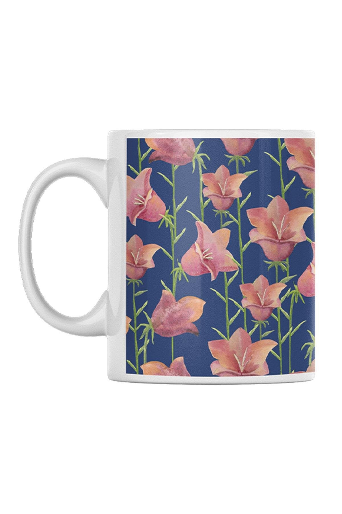 Çiçek Desenli Vintage No:9 Baskılı Kupa Bardak