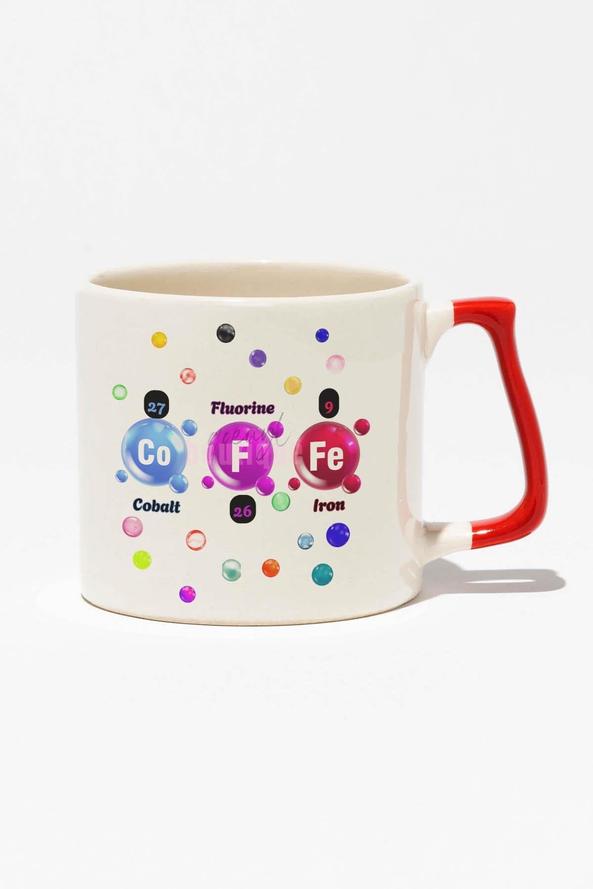 Coffee Baskılı | Periyodik Tablo Hediyelik | Kırmızı Kulplu Modern Seramik Kupa