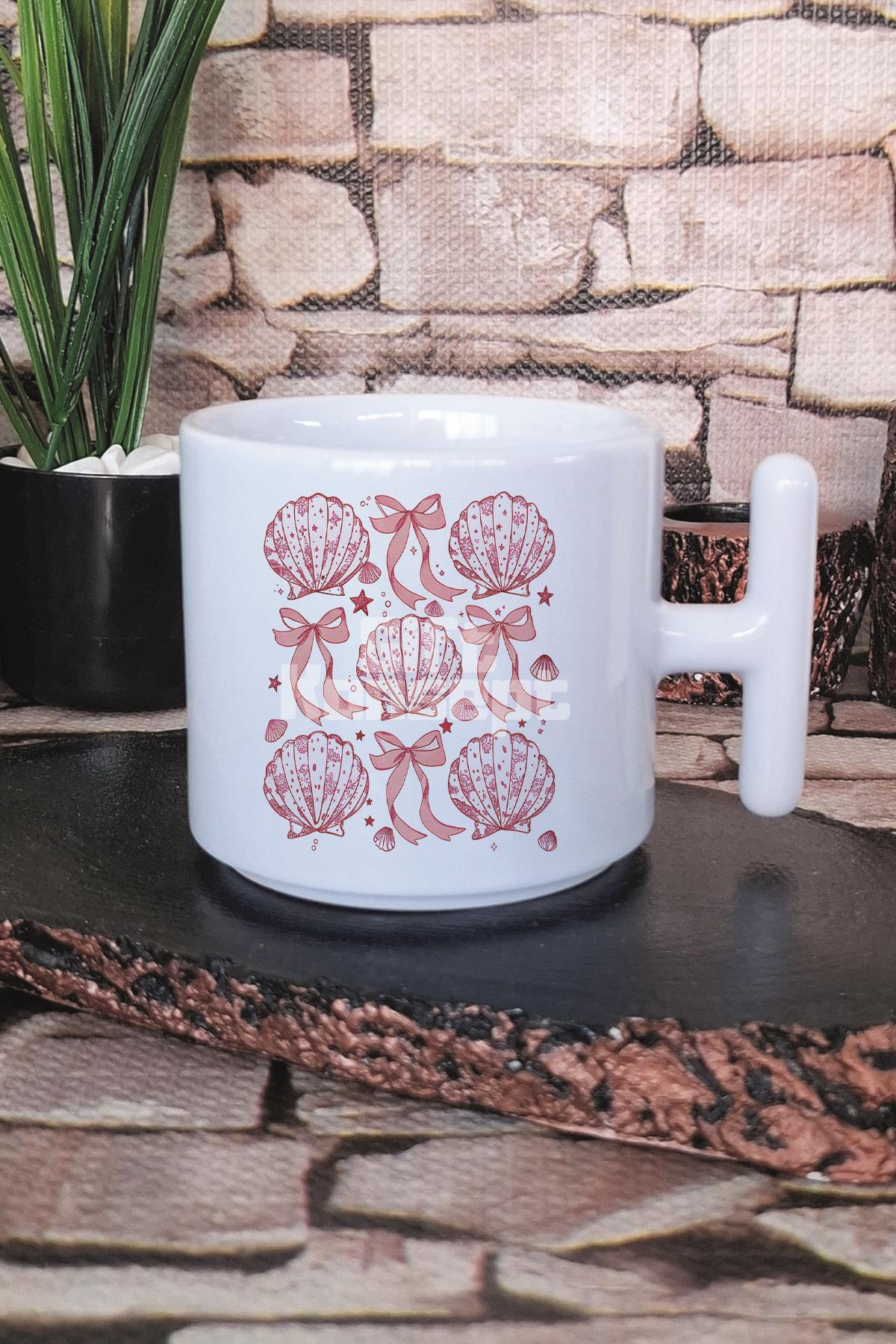 Coquette Seashell Deniz Kabukları Baskılı T Kulplu Latte Fincanı Kupa Bardak