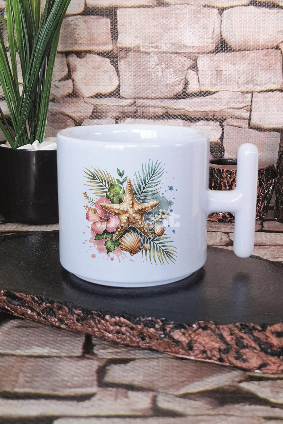Deniz Yıldızı Baskılı T Kulplu Latte Fincanı Kupa Bardak