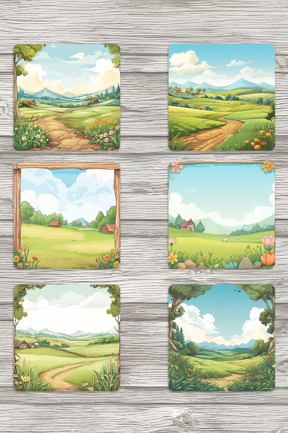 Doğa Temalı Çiftlik No:2 Baskılı 6'lı Set Dekoratif Ahşap Kare Bardak Altlığı