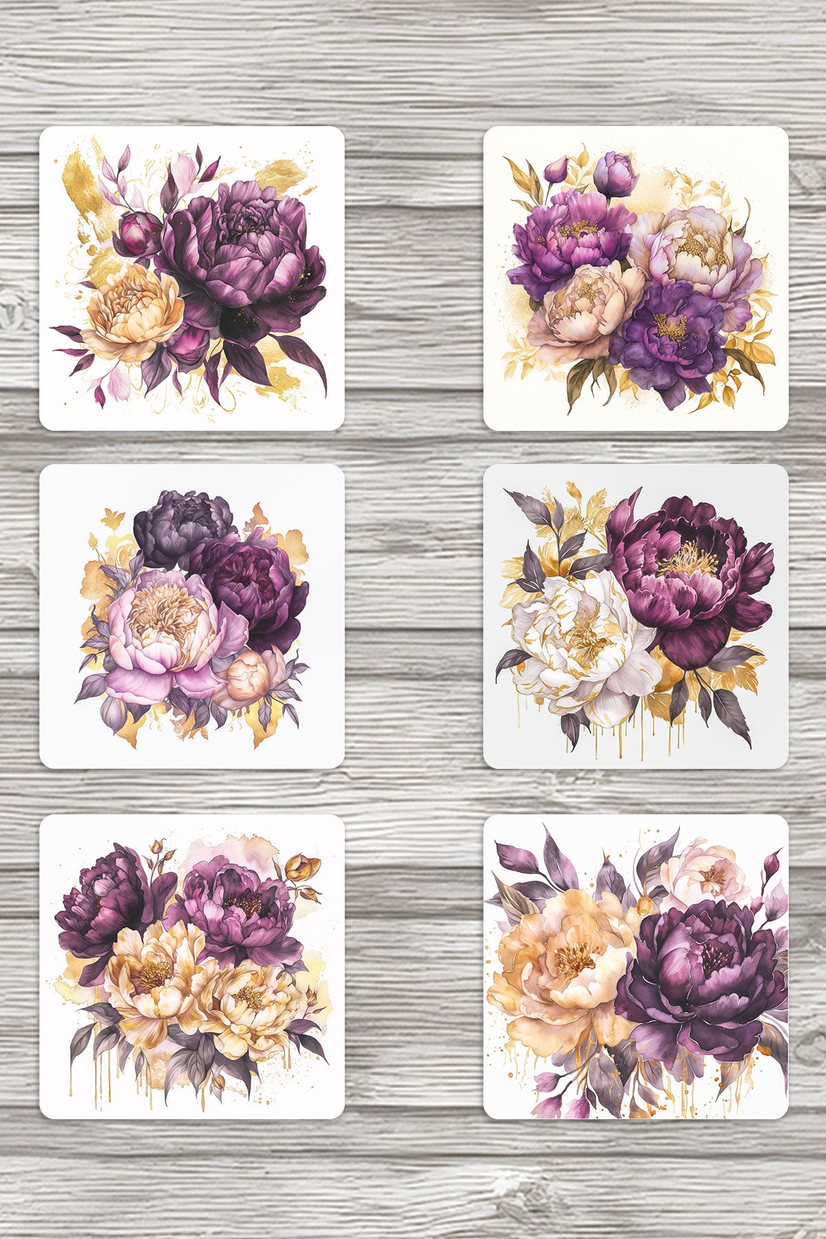 Doğa Temalı Renli Çiçekler Baskılı 6'lı Set Dekoratif Ahşap Kare Bardak Altlığı