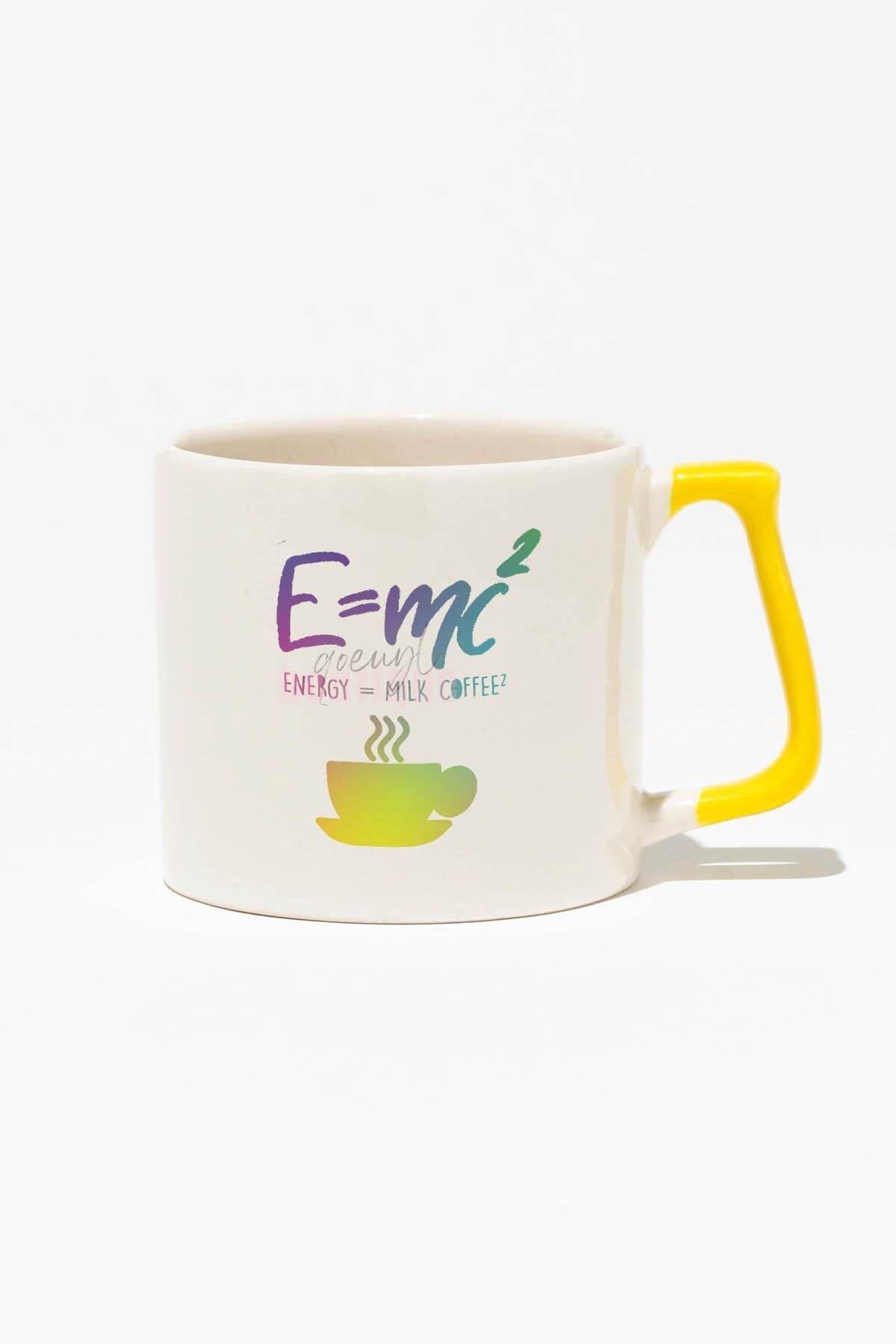 E=mc2 Baskılı | Eğlenceli Komik Fizik Hediyelik | Kırmızı Kulplu Modern Seramik Kupa