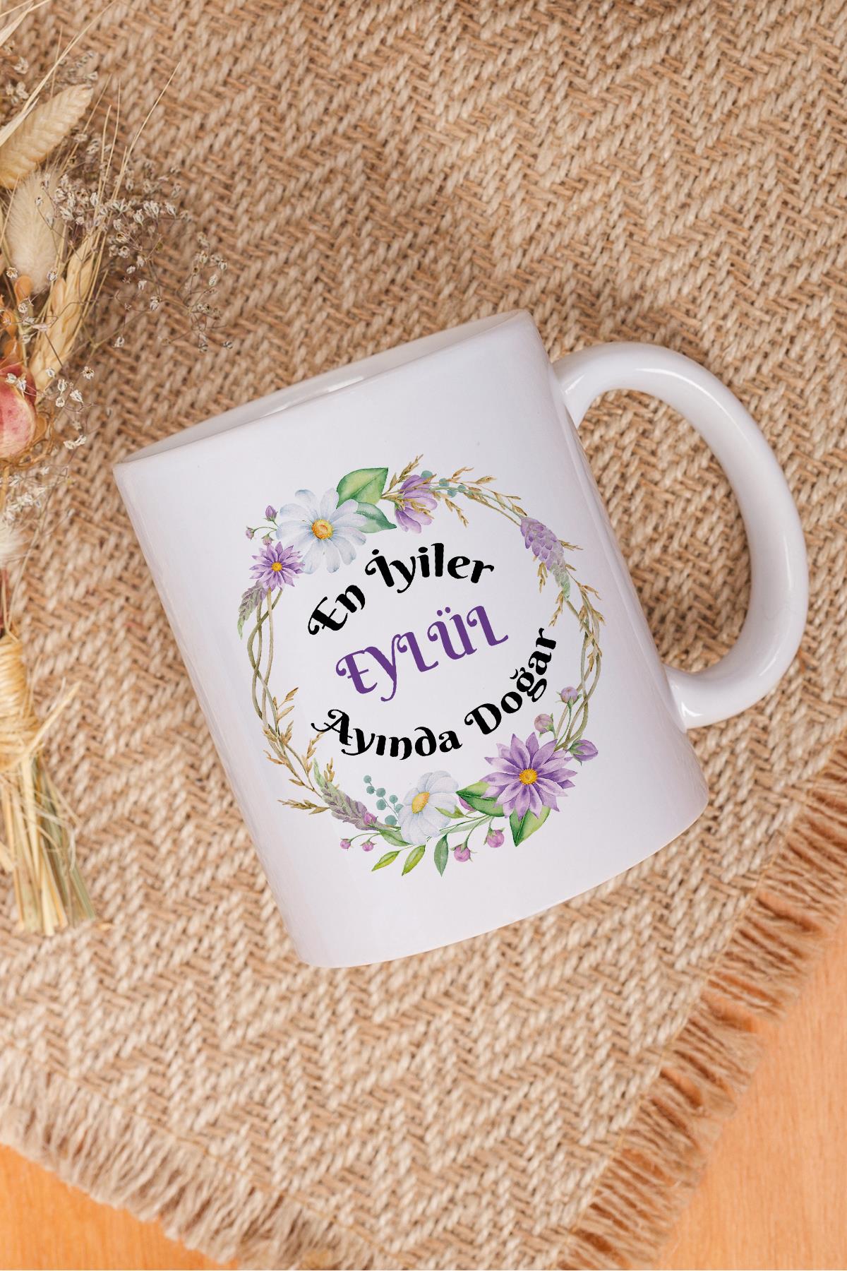 En İyiler Eylül Ayında Doğar Çiçek Baskılı Doğum Günü Hediyelik Eğlenceli Beyaz Kupa Bardak