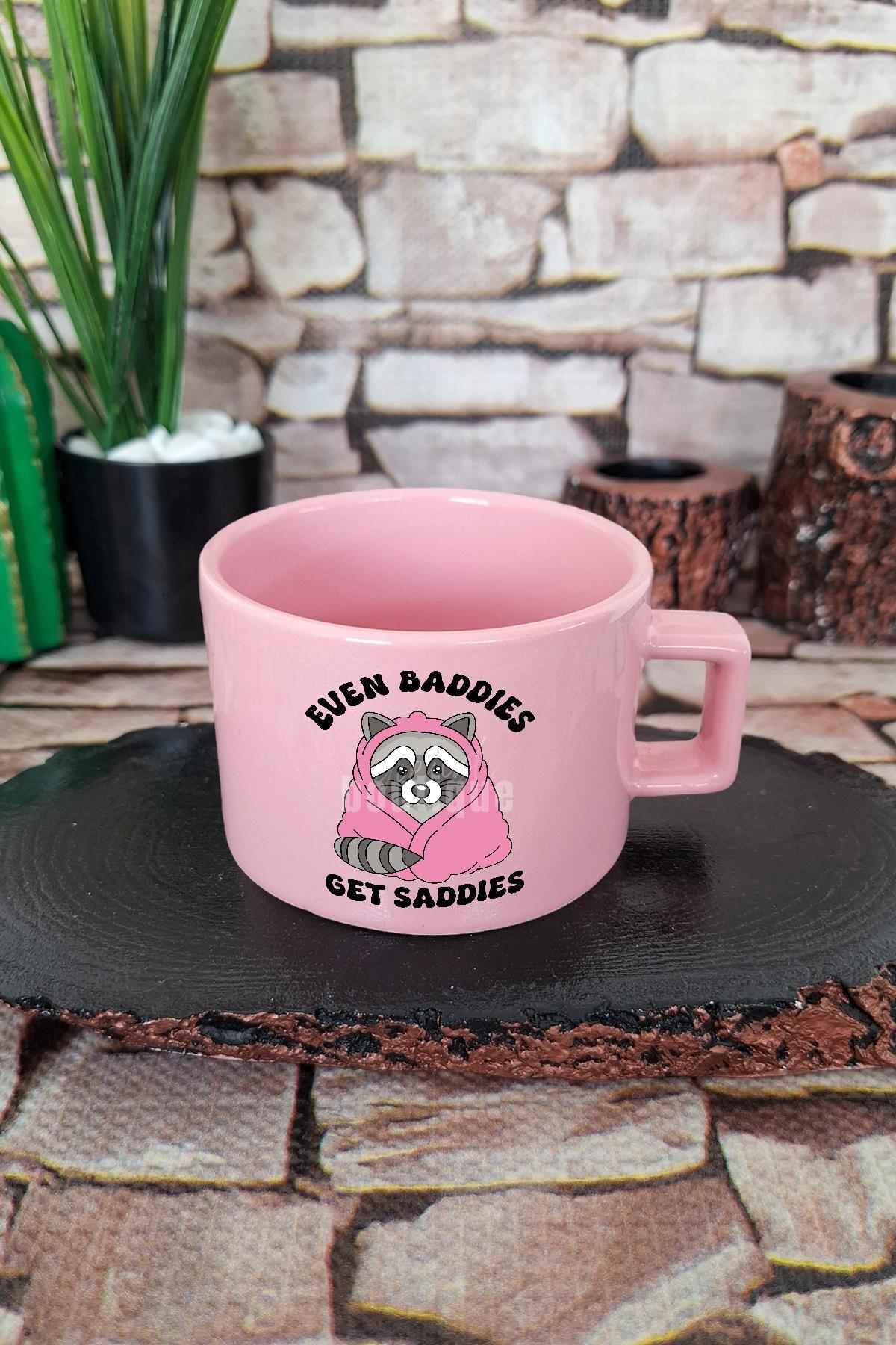 Even baddies get saddies Kare Kulplu Fincan Mavi Kupa Bardak