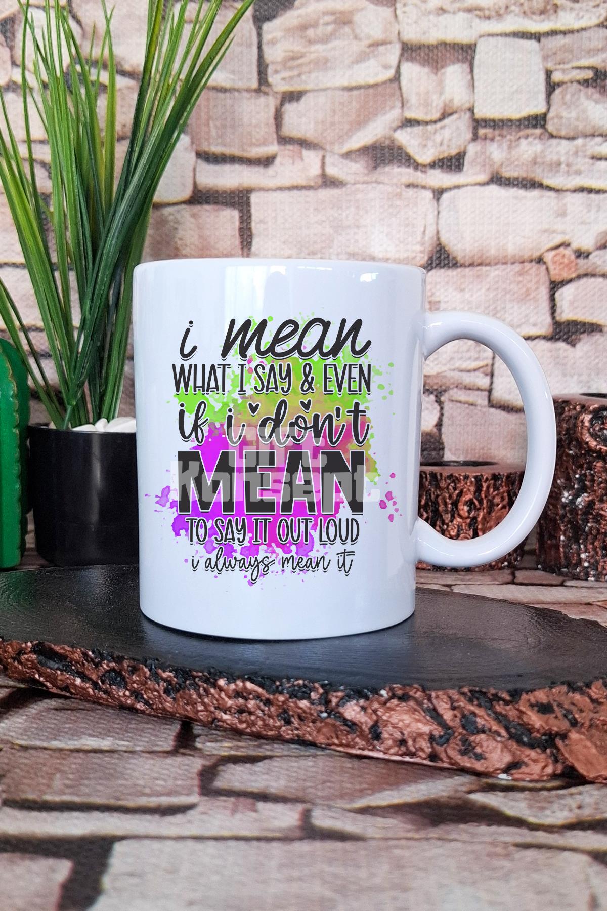 "I mean what I say, always mean it" Dobra İfade Hediyelik Baskılı Çay Kahve Sunum Kupa Bardak