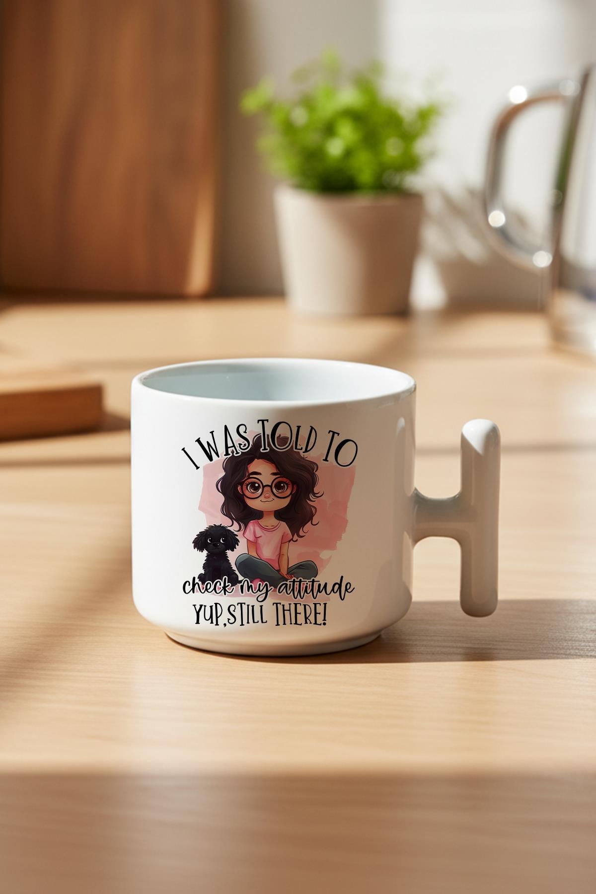 I Was Told To Check My Attitude Baskılı Hediyelik T Kulplu Latte Fincanı Kupa Bardak