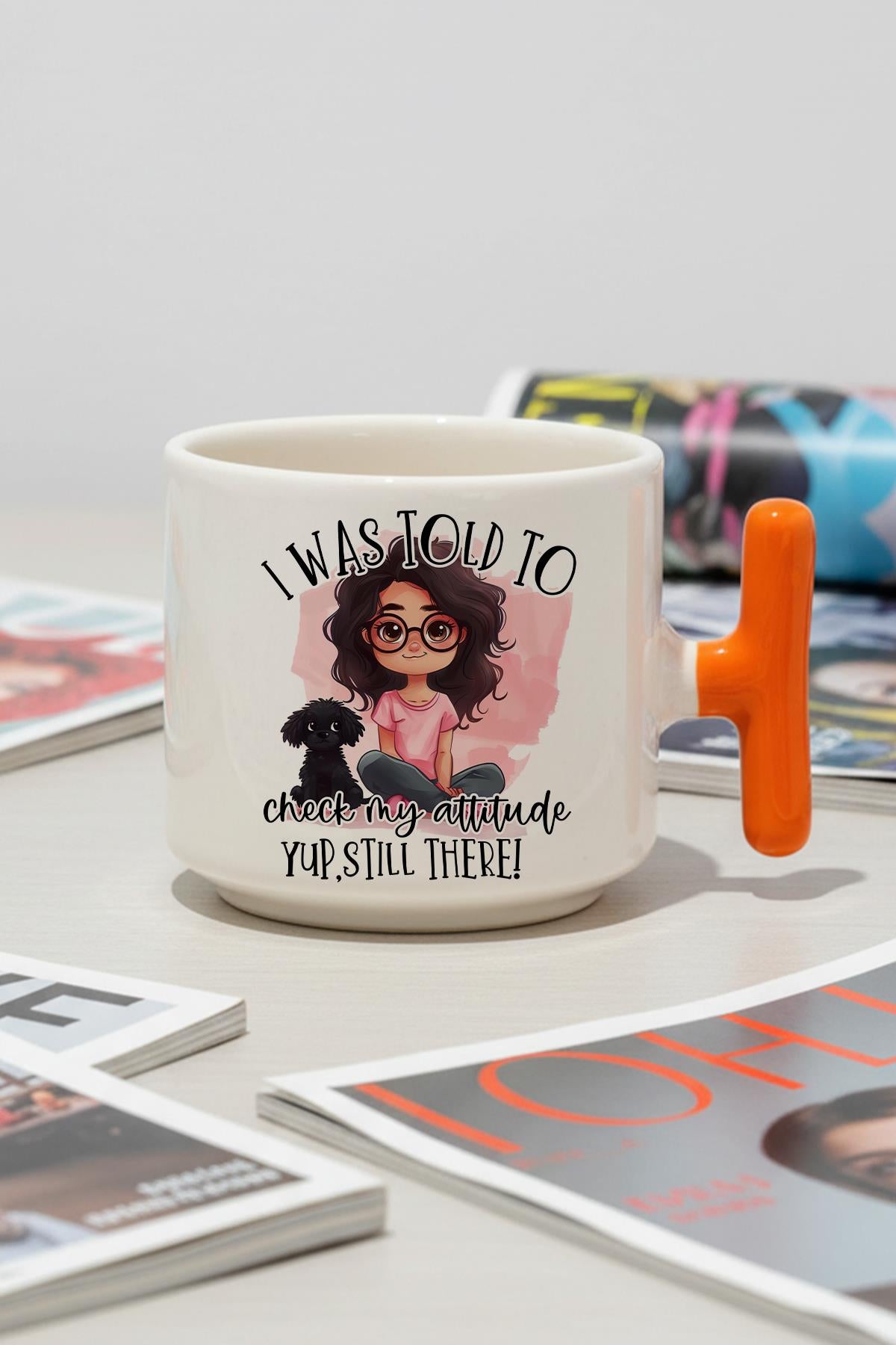 I Was Told To Check My Attitude Tasarımlı T Kulplu Latte Fincanı Kupa, şık ve modern bir seramik kupa arayanlar için ideal bir seçimdir.; Evde veya ofiste kullanıma uygun bu kahve kupası, sıcak ve soğuk içecekler için mükemmeldir.; Ergonomik tasarımı sayesinde günlük kullanımda konfor sunar ve özel tasarımıyla dikkat çeker.; Sevdiklerinize hediye etmek için de harika bir seçenek: doğum günü hediyesi, anneler günü hediyesi veya arkadaşa hediye olarak tercih edilebilir.; Öne çıkan özellikler:• T kulplu kupa ile rahat tutuş• Latte fincanı boyutunda ideal kapasite• Modern ve şık seramik tasarım• Hem sıcak hem soğuk içecekler için uygun• Hediye ve kişisel kullanım için mükemmel• Ev ve ofis ortamına uyumlu