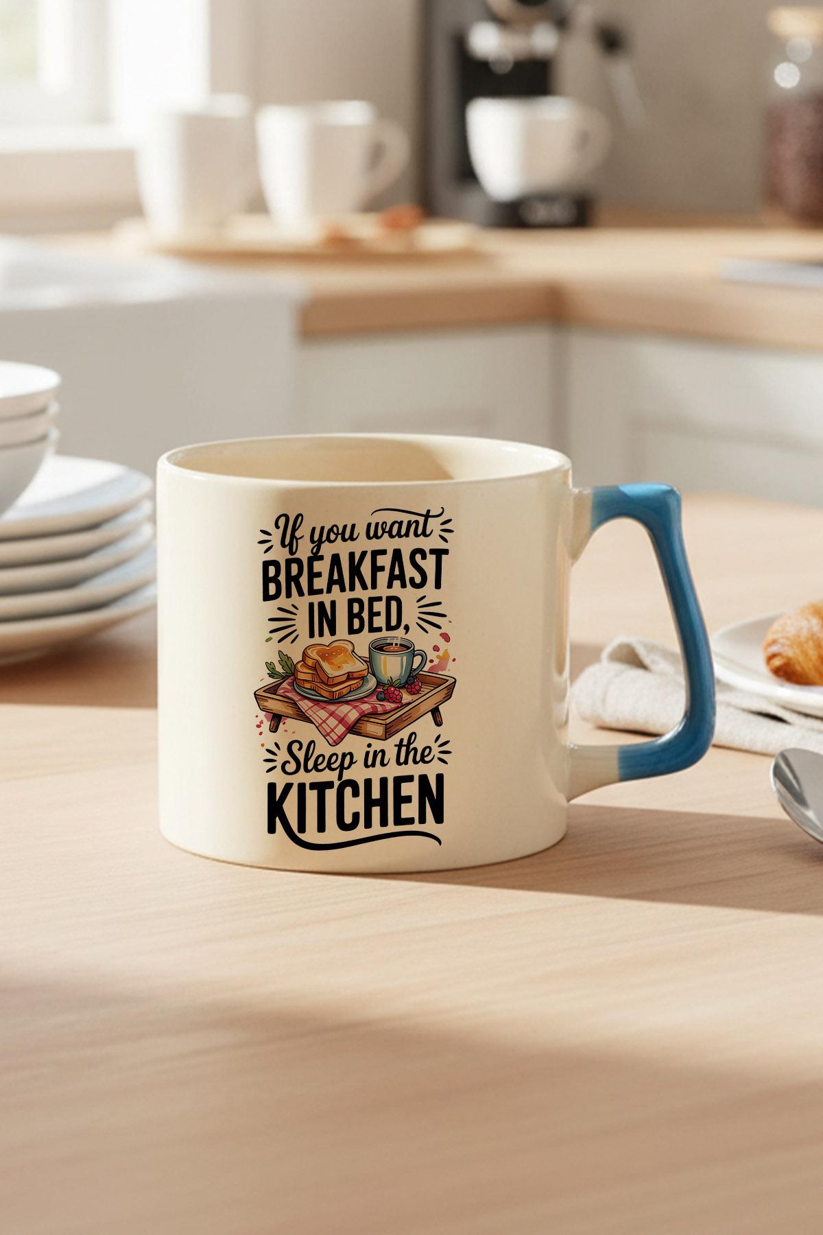 If You Want Breakfast Baskılı Mavi D Kulplu Kupa Bardak