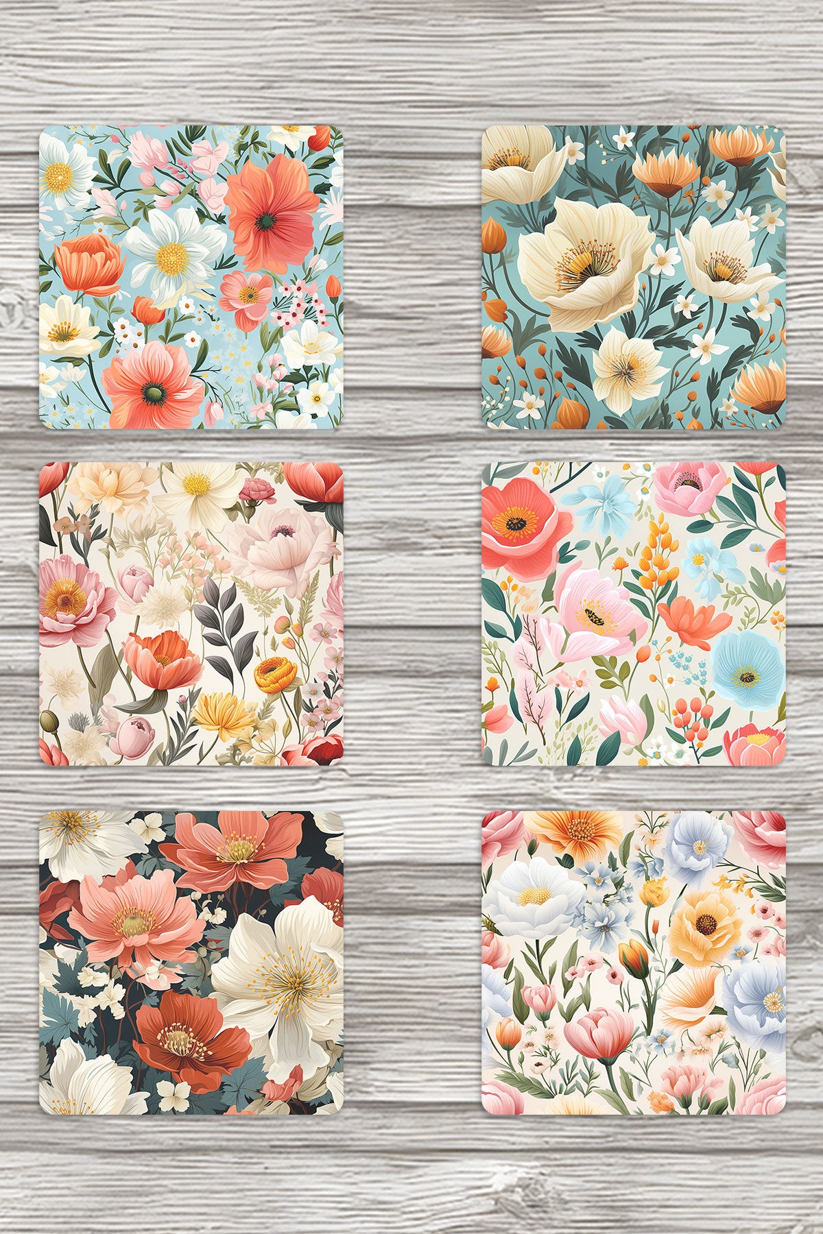İlkbahar Çiçekleri No:1 Baskılı 6'lı Set Dekoratif Ahşap Kare Bardak Altlığı