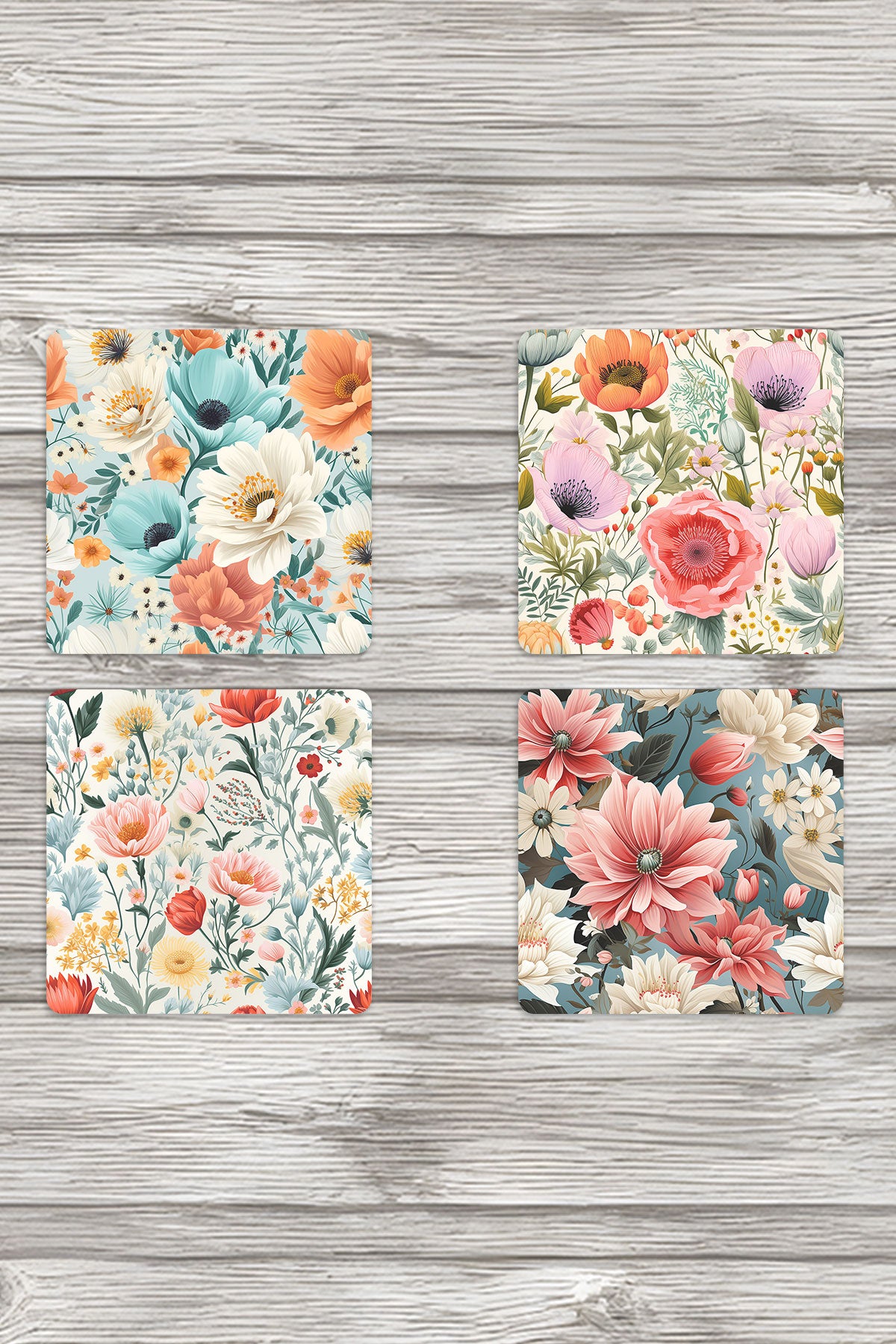 İlkbahar Çiçekleri No:2 Baskılı 4'lü Set Dekoratif Ahşap Kare Bardak Altlığı