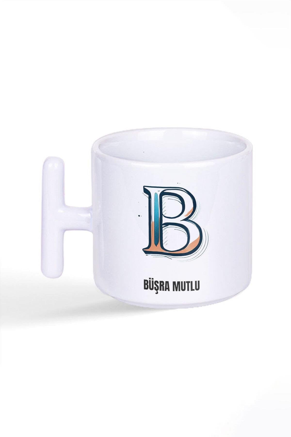 İsme Özel Kişiselleştirilebilir B Harfi Baskılı Latte Fincanı T Kulplu Kupa Bardak