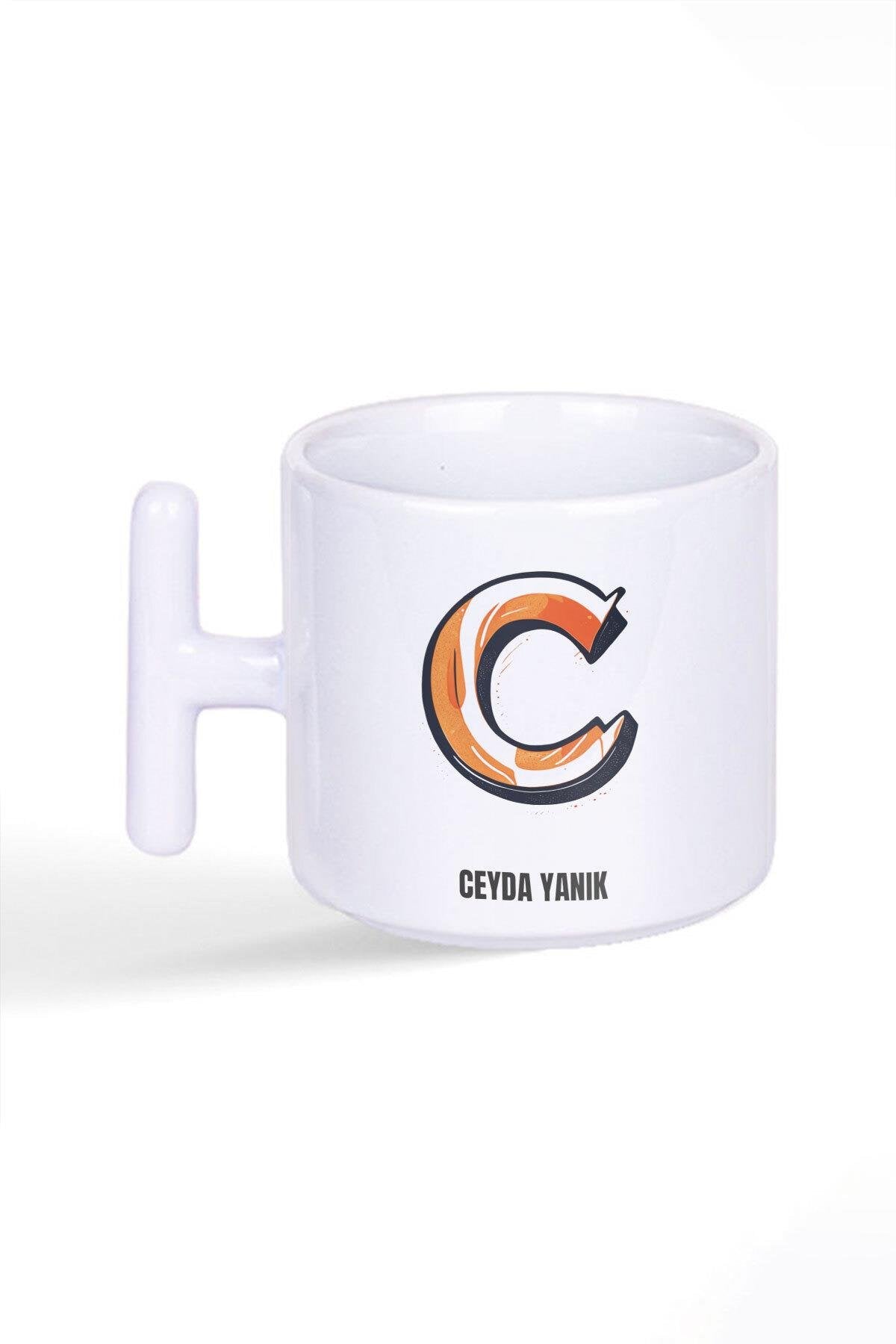 İsme Özel Kişiselleştirilebilir C Harfi Baskılı Latte Fincanı T Kulplu Kupa Bardak