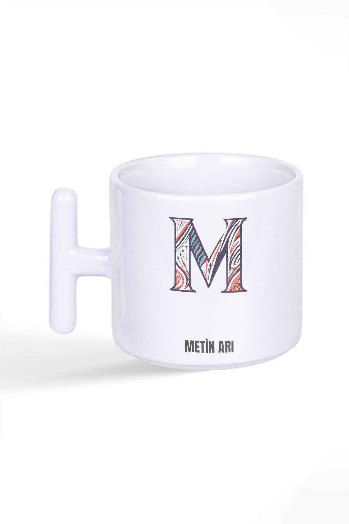 İsme Özel Kişiselleştirilebilir M Harfi Baskılı Latte Fincanı T Kulplu Kupa Bardak