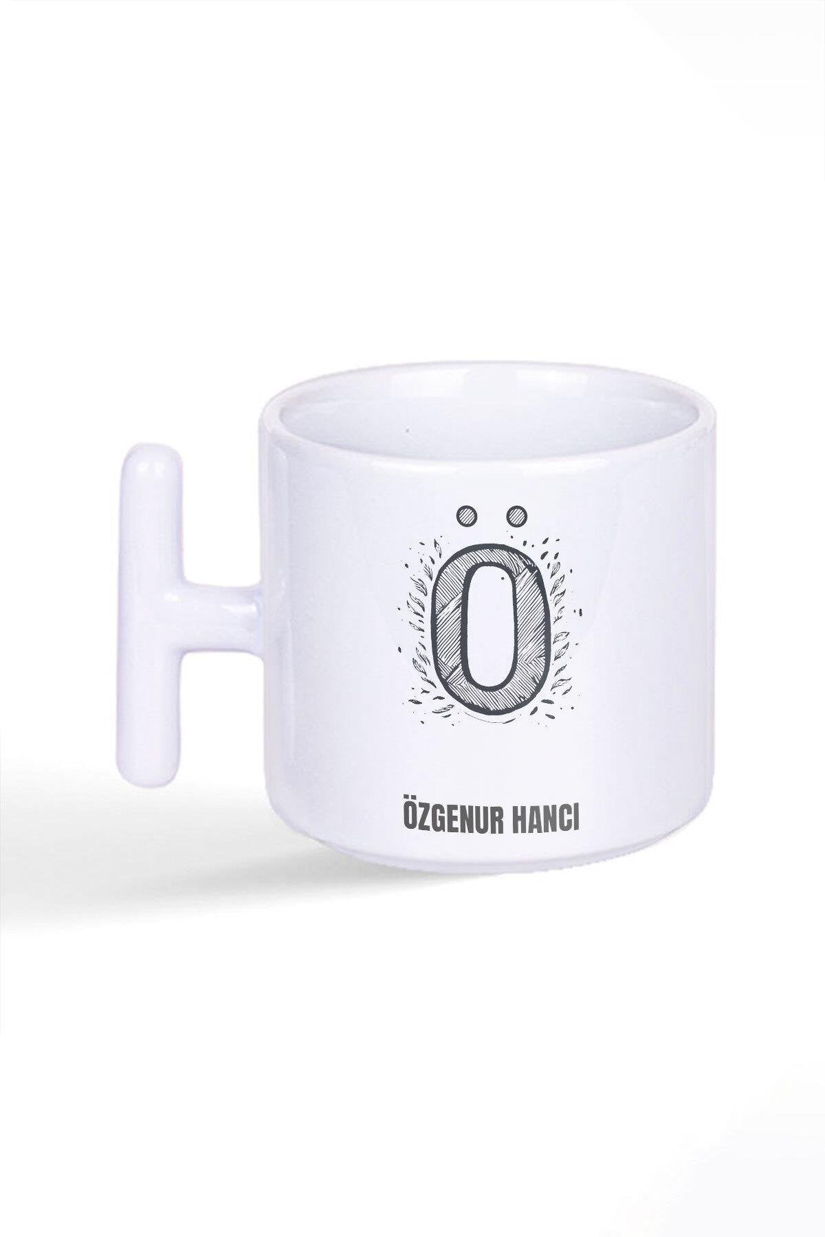 İsme Özel Kişiselleştirilebilir Ö Harfi Baskılı Latte Fincanı T Kulplu Kupa Bardak