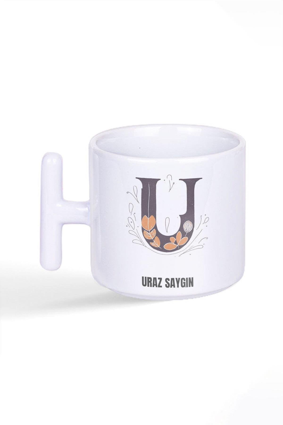 İsme Özel Kişiselleştirilebilir U Harfi Baskılı Latte Fincanı T Kulplu Kupa Bardak