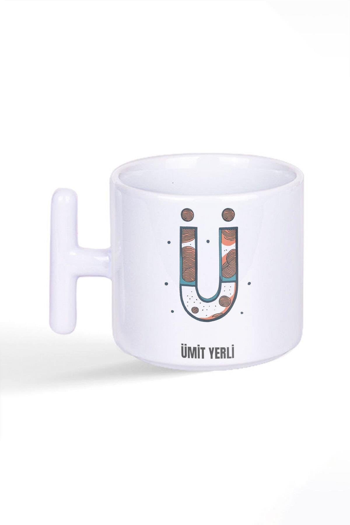 İsme Özel Kişiselleştirilebilir Ü Harfi Baskılı Latte Fincanı T Kulplu Kupa Bardak