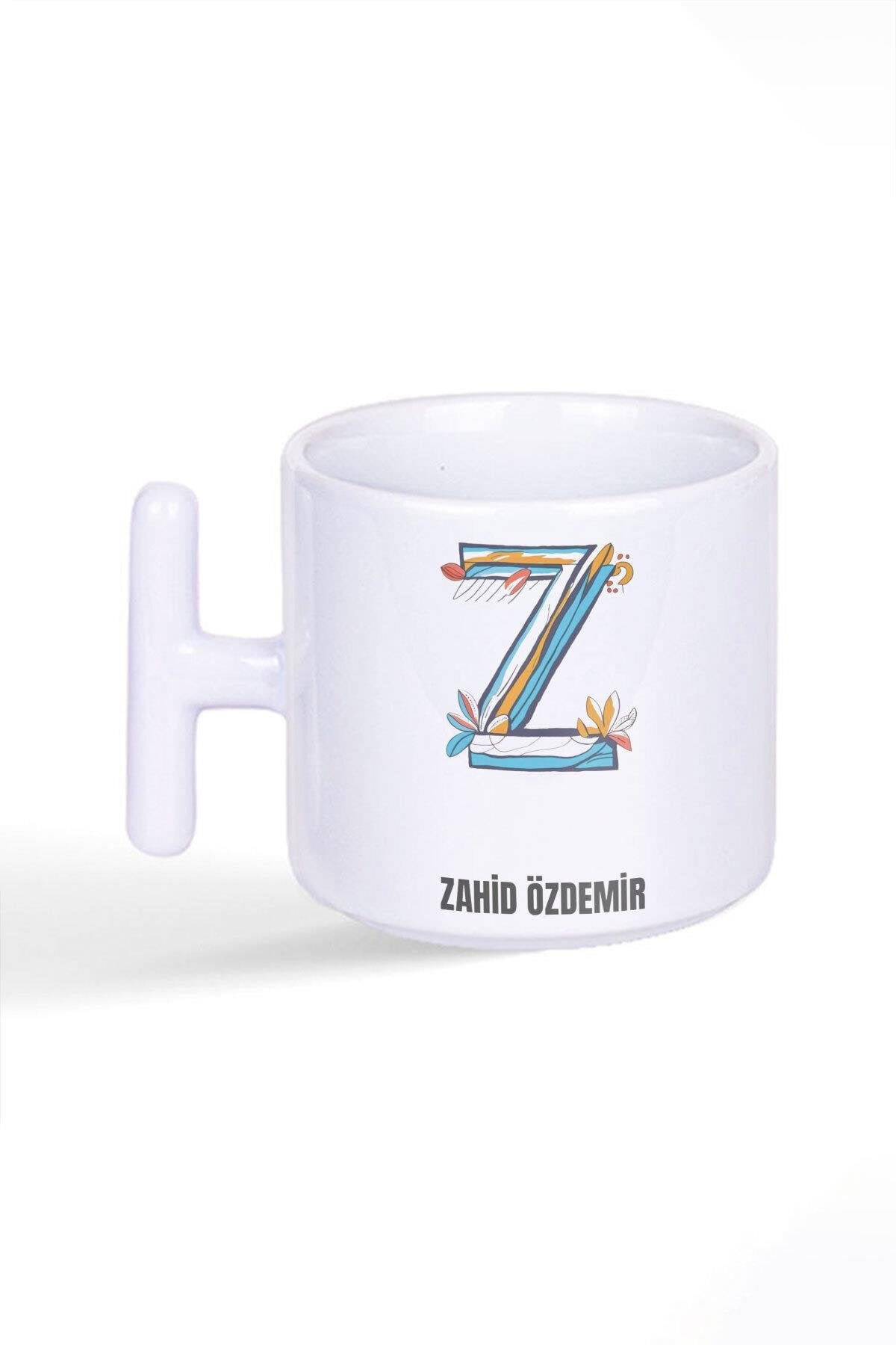 İsme Özel Kişiselleştirilebilir Z Harfi Baskılı Latte Fincanı T Kulplu Kupa Bardak