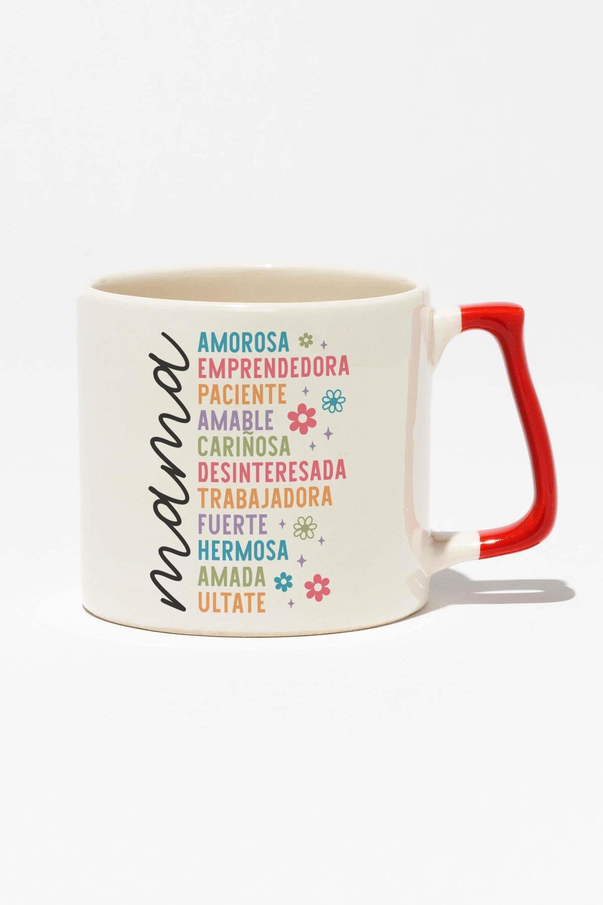 İspanyolca Anne Quotes Baskılı Anneler Günü Hediyelik Kırmızı Kulplu Modern Seramik Kupa