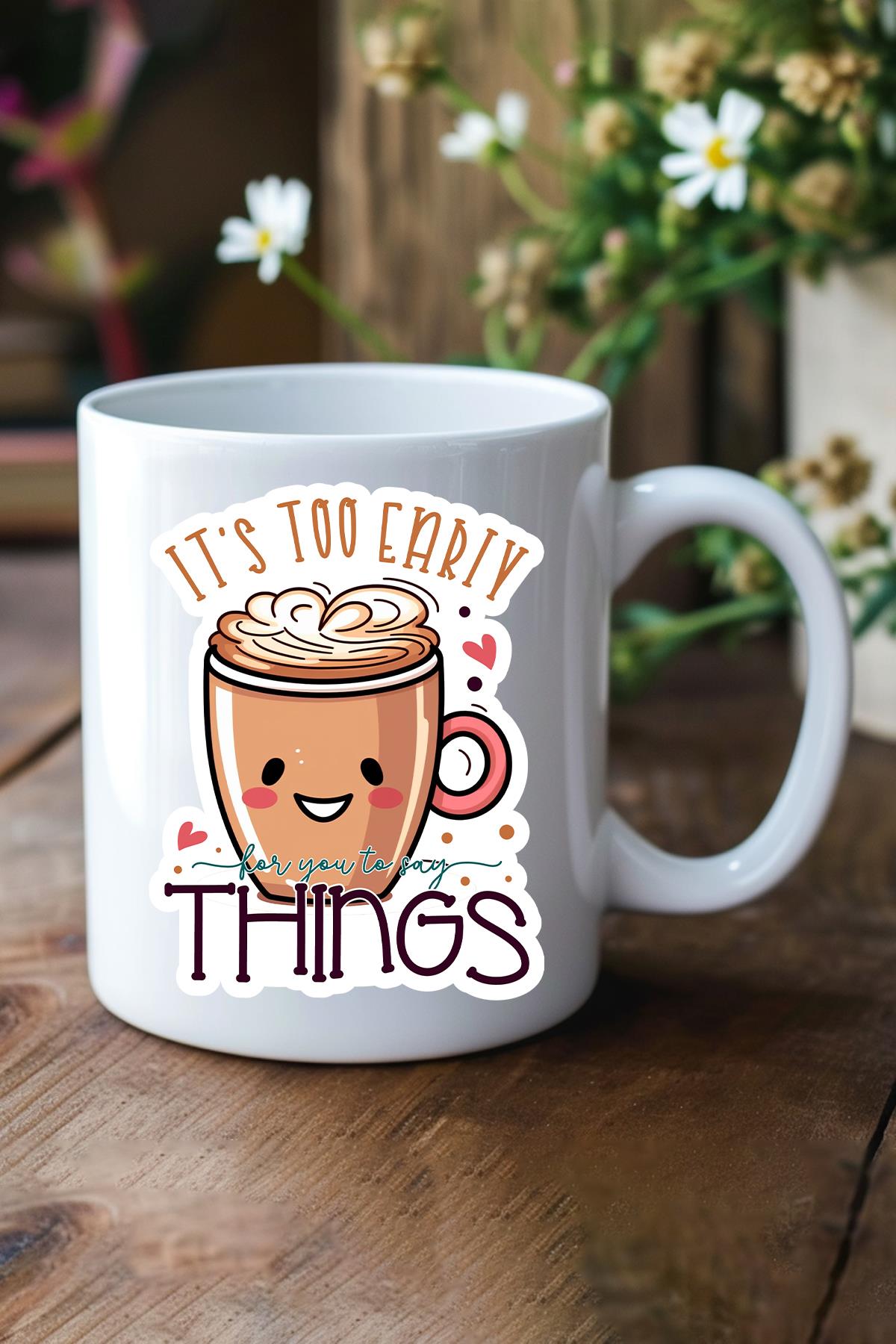 Herkesin bir favori kupası vardır; güne başlarken ilk uzandığı, en keyifli anlarına eşlik eden o özel kupa.; İşte bu "Its Too Early For" baskılı seramik kupa, yeni favoriniz olmaya aday.; NEDEN BU KUPAYI SEVECEKSİNİZ?* Kişisel Bir Dokunuş: Bu sıradan bir kupa değil, üzerindeki "Its Too Early For" tasarımı ile tarzınızı, mizahınızı veya ilgi alanlarınızı yansıtan kişisel bir ifadedir.; * Yüksek Kalite: Pürüzsüz seramik yüzeyi ve canlı, kalıcı baskısı, her kullanımda kaliteyi hissettirir.; İçeceklerinizin tadını bozmaz ve sıcaklığını ideal sürede korur.; * Mükemmel Hediye: Doğum günü, yeni iş tebriği, yıl dönümü veya sadece içinizden geldiği için.; Sevdiklerinize hem kullanışlı hem de anlamlı bir hediye vermek için harika bir seçenektir.; ÜRÜN ÖZELLİKLERİ- Malzeme: Yüksek Kaliteli Seramik- Baskı: Yüksek Çözünürlüklü Baskı- Kulp: Ergonomik ve Rahat Tutuş Sağlayan Standart Kulp- Bakım: Bulaşık makinesinde yıkanabilir.; (Baskının canlılığını uzun süre koruması için elde yıkama tavsiye edilir.; )KULLANIM ALANLARIİster evde güne enerjik bir başlangıç yapın, ister ofisteki masanıza karakter katın.; Bu kupa, kahve, çay, sıcak çikolata gibi tüm favori içecekleriniz için mükemmel bir arkadaştır.; Sade, şık ve anlamlı.; Bu özel tasarım kupayı koleksiyonunuza ekleyin veya sevdiklerinize hediye ederek onları mutlu edin.; Şimdi sepete ekleyin ve keyifli anlarınızın tadını bu özel kupayla çıkarın.