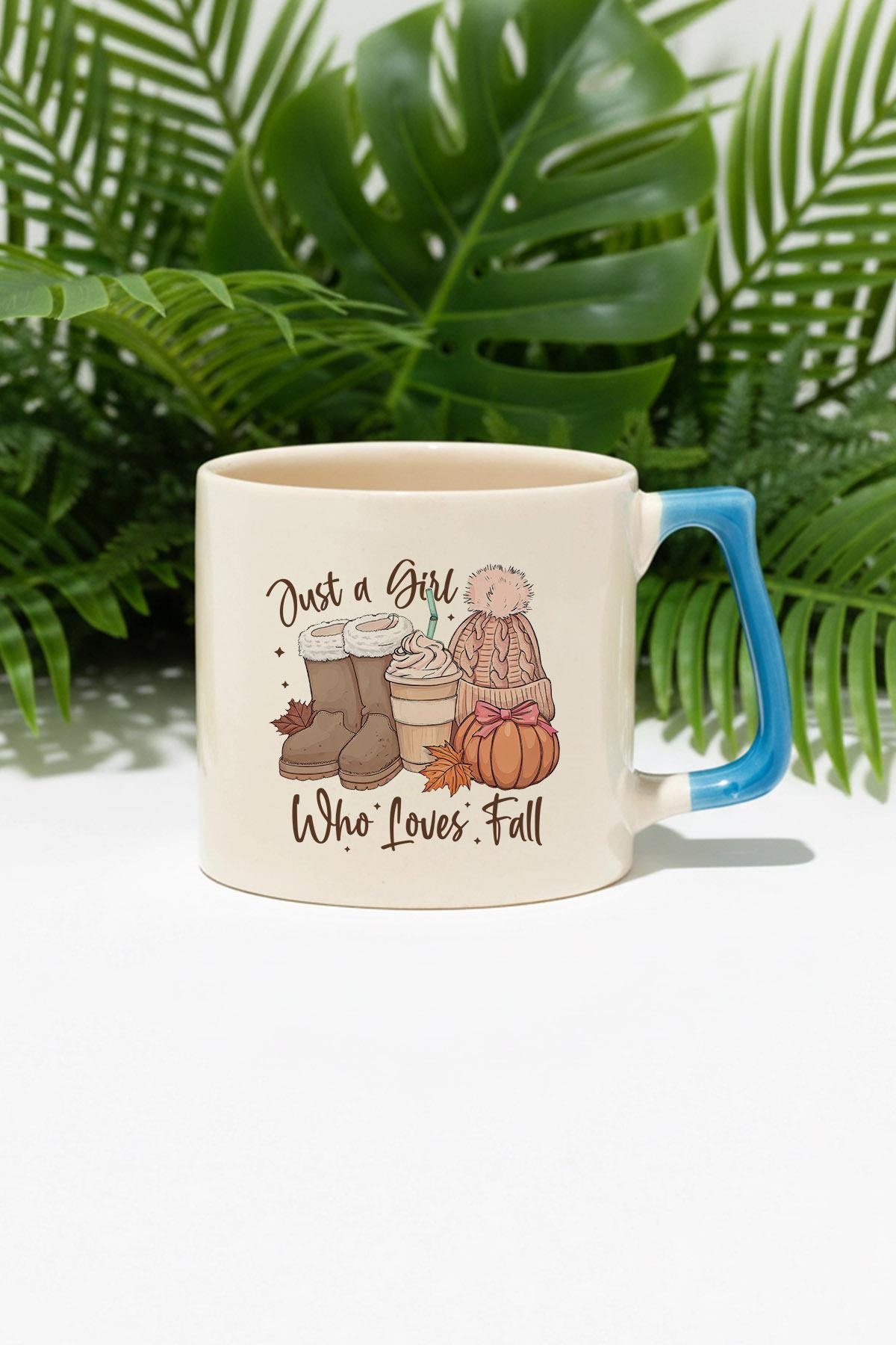 Just a Girl Who Loves Fall No:2 Baskılı Mavi D Kulplu Kupa Bardak