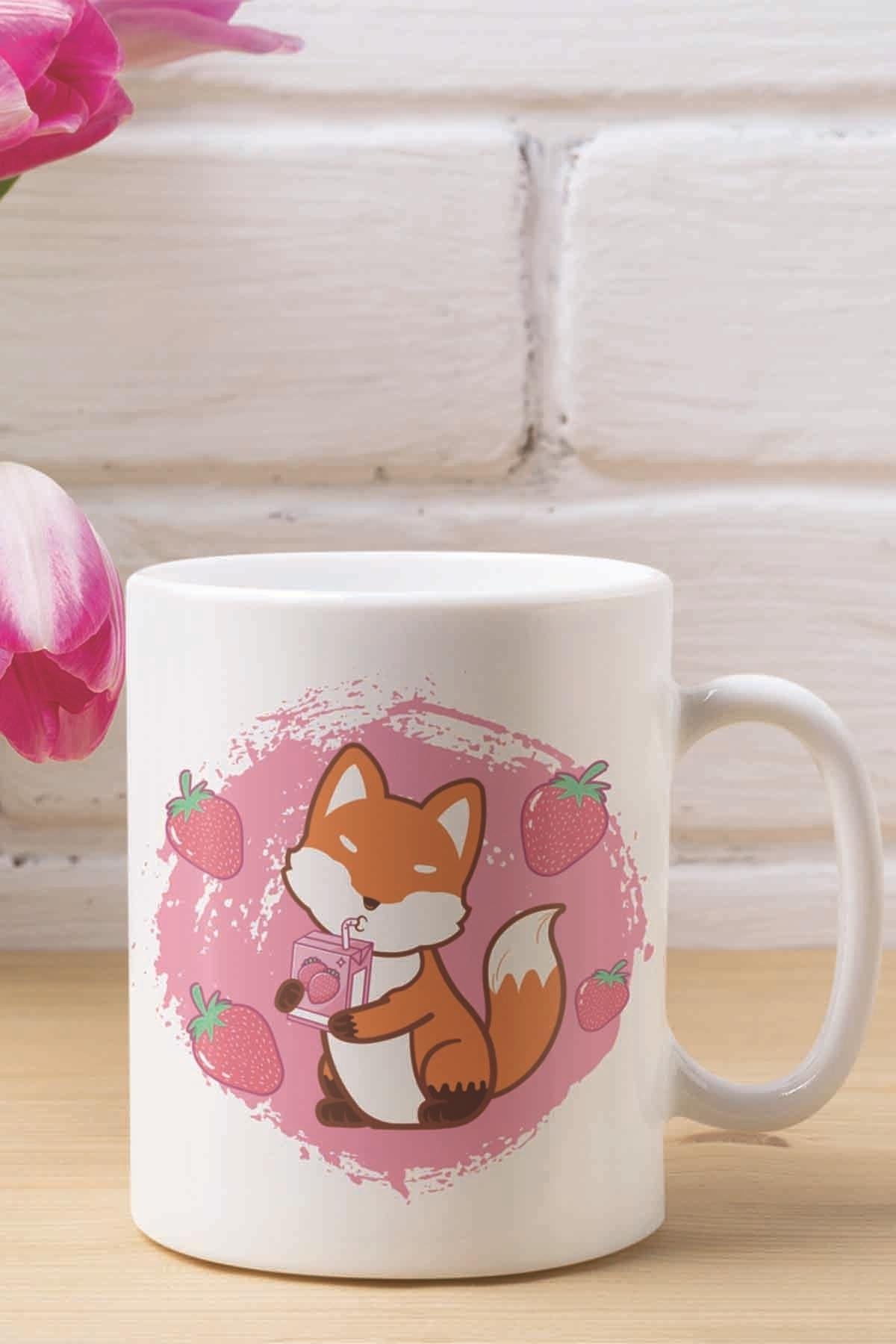 Kawai Sevimli Tilki Anime Baskılı Hediyelik Kupa Bardak