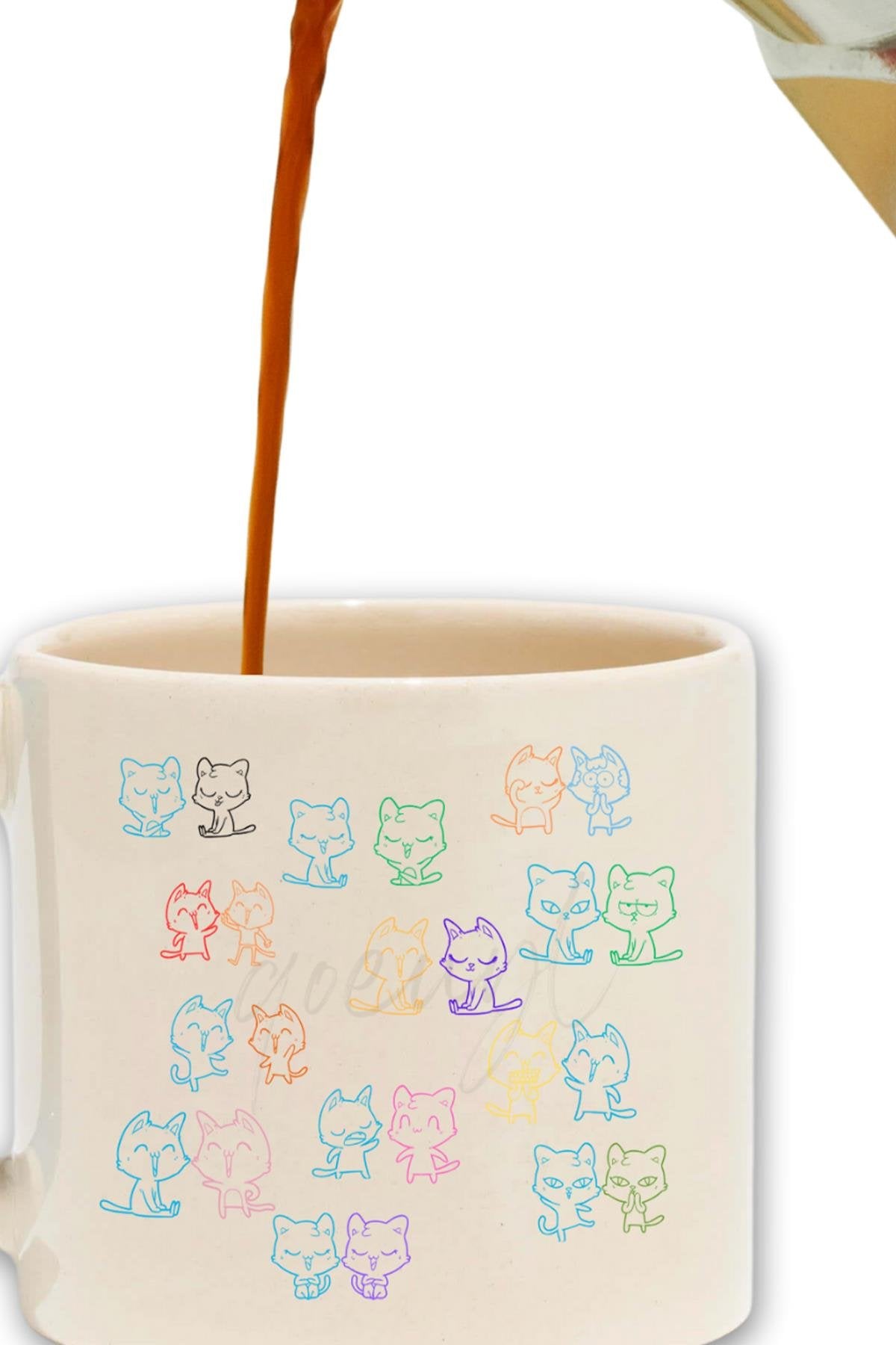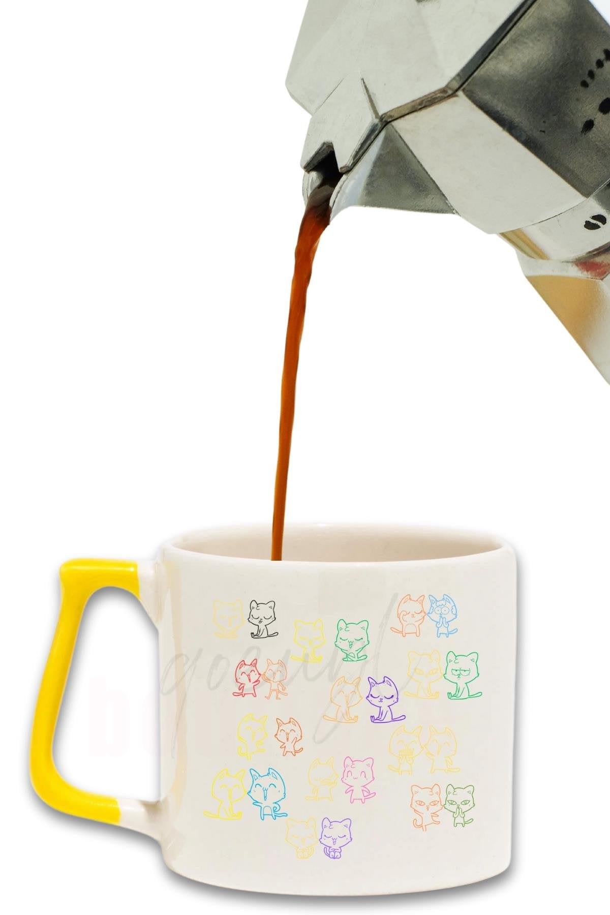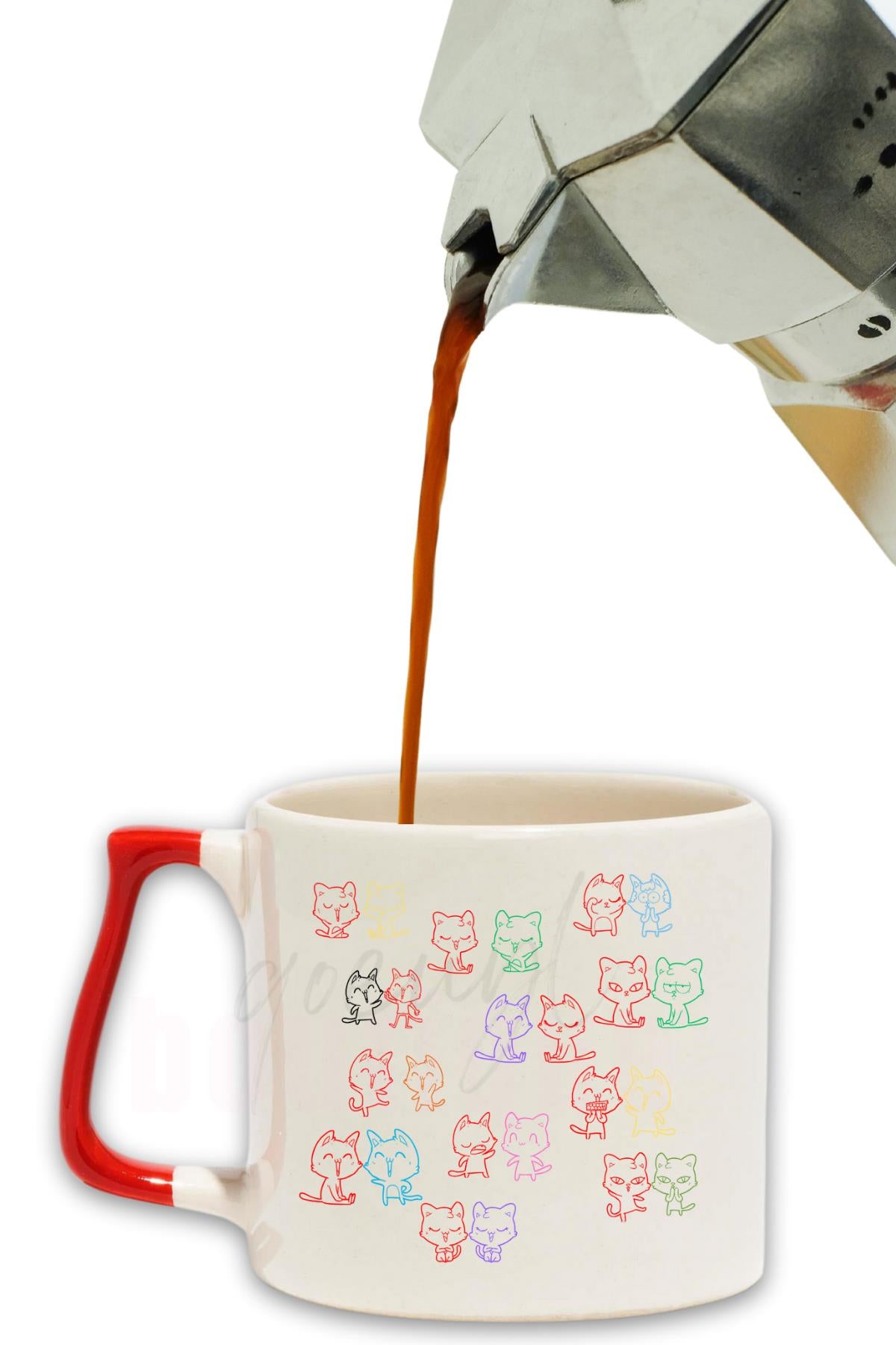 Kediler Mahallesi Baskılı Hediyelik Renkli Kulplu Modern Seramik Kupa