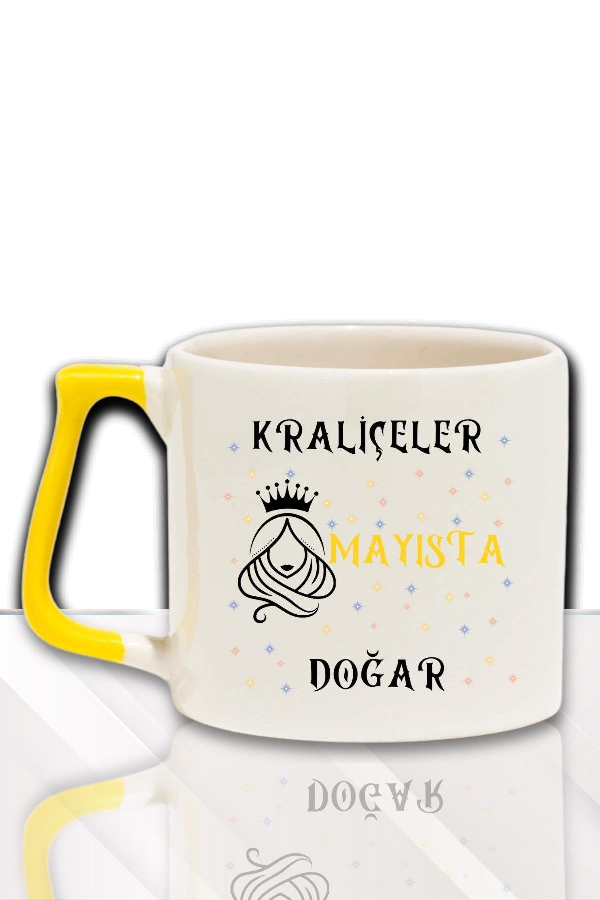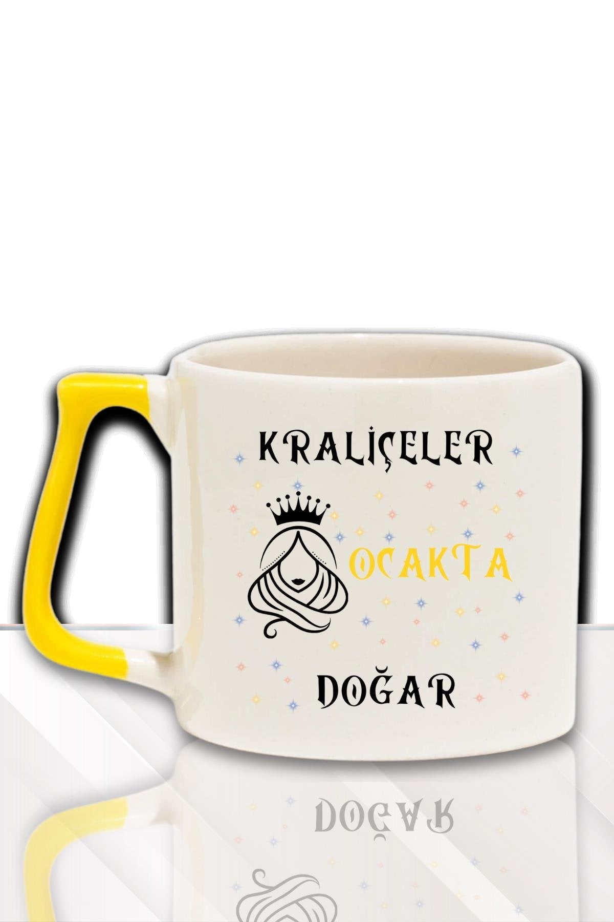 - Kraliçelerin büyülü dünyasını yansıtan "Kraliçeler Bu Ayda Doğar" temalı tasarımıyla, sevdiklerinizin özel günlerini özel kılacak bir hediye.; - Modern ve şık görünümüyle dikkat çeken bu seramik kupa bardak, günlük kullanım için idealdir ve her ortama uyum sağlar.; - 250 ml hacmiyle ideal boyutta olan bu bardak, içeceklerinizi keyifle yudumlamanız için mükemmeldir.; - Yerli üretim seramik malzemesi sayesinde hem dayanıklı hem de estetik bir kullanım sunar; uzun süreli keyif vaat eder.; - Kırmızı ya da Sarı kulpları ile renkli ve canlı bir görünüm kazandırarak, herhangi bir kutlama veya toplantıda fark yaratmanızı sağlar.;