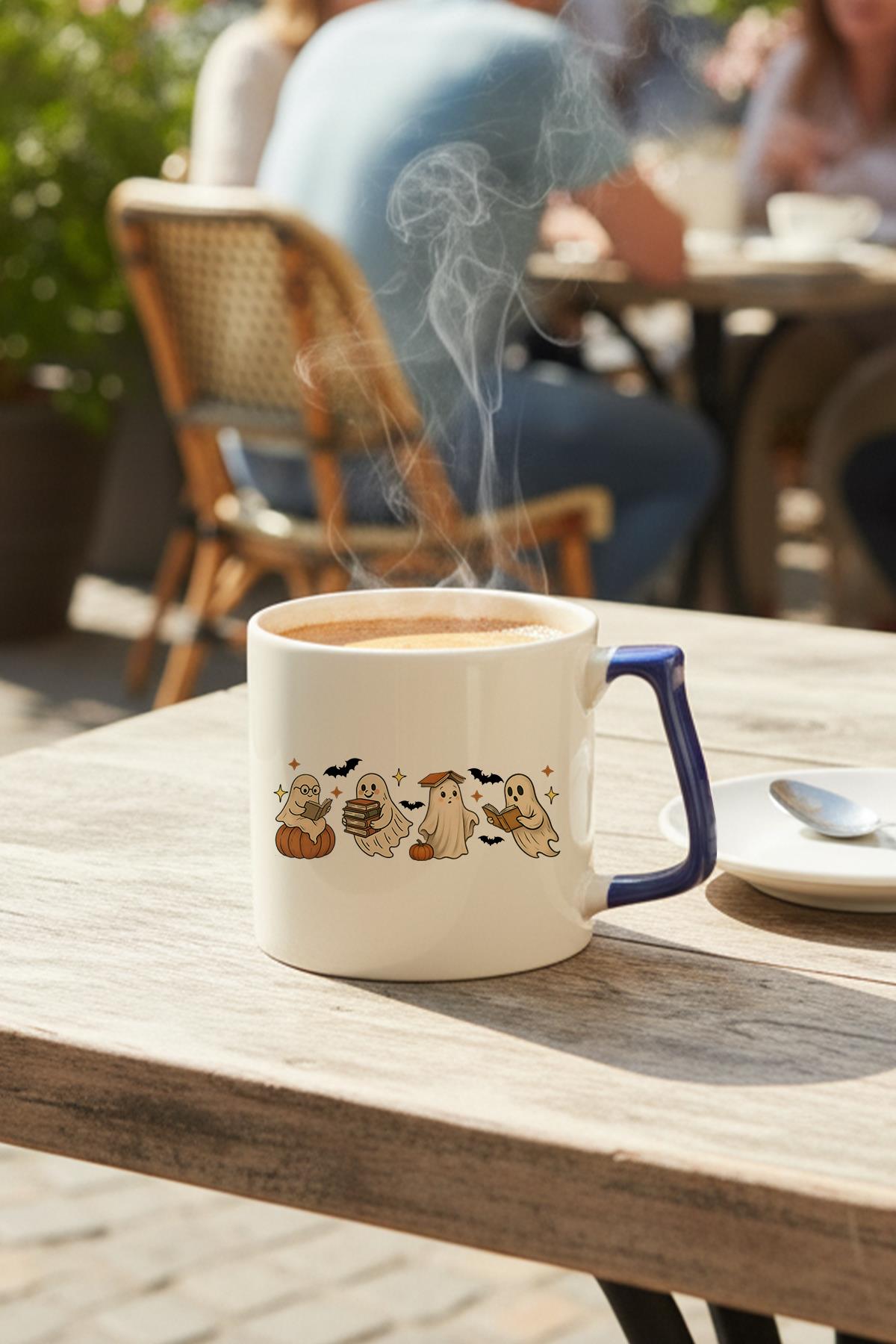Kitap Okuyan Sevimli Hayaletler Baskılı Lacivert D Kulplu Kupa Bardak