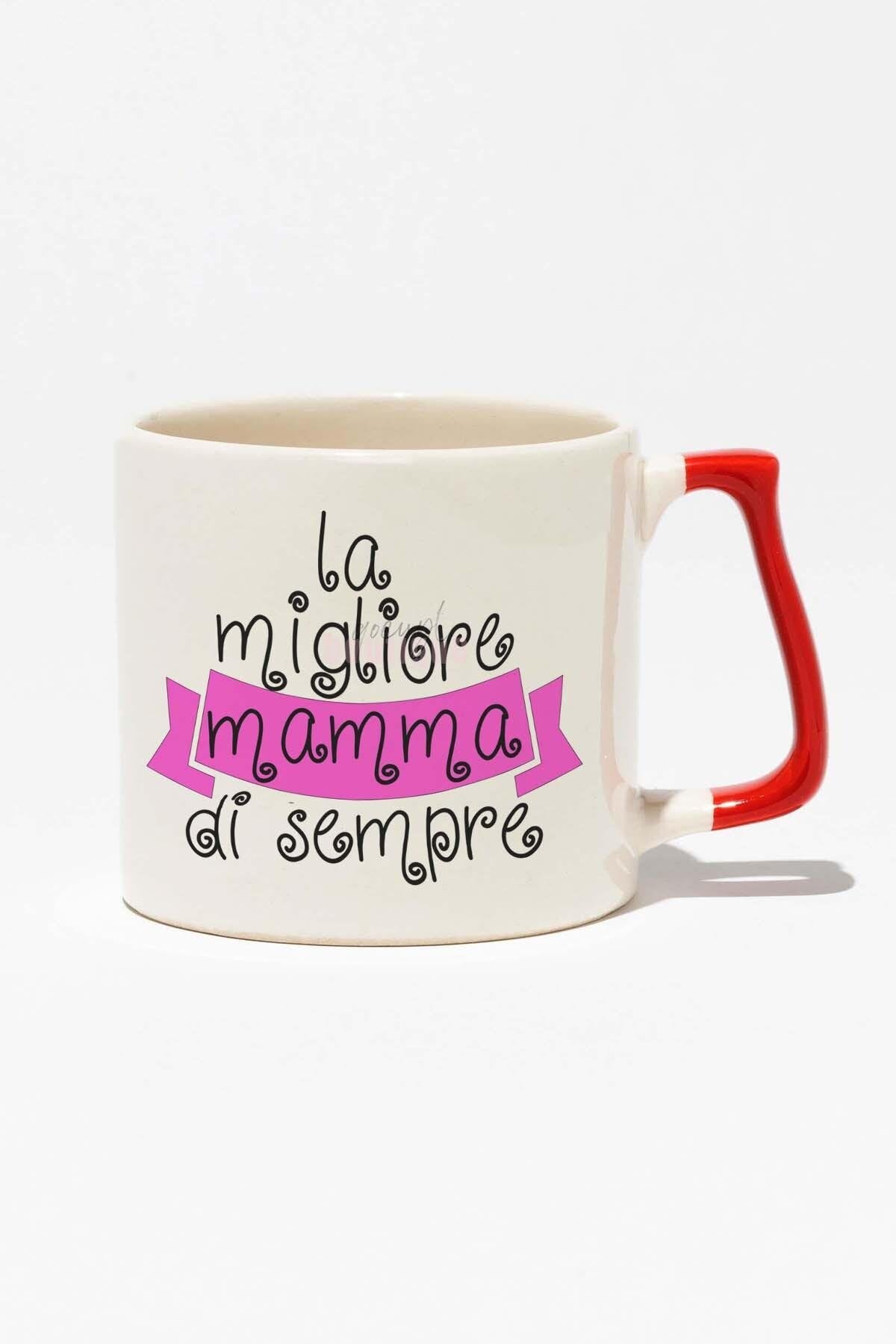 La Migliore Mamma Di Sempre Anneler Günü Hediye Baskılı Kırmızı Kulplu Modern Seramik Kupa