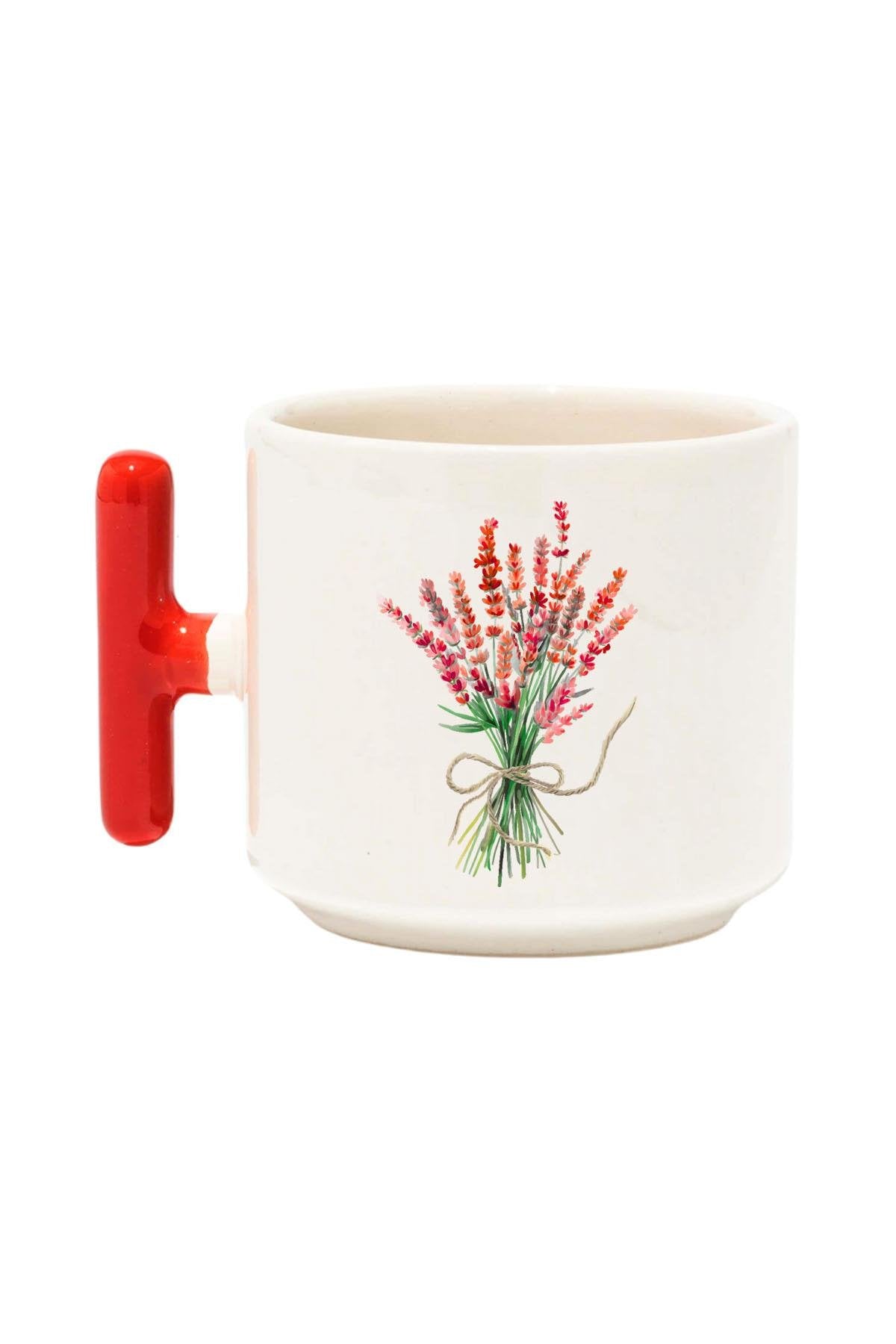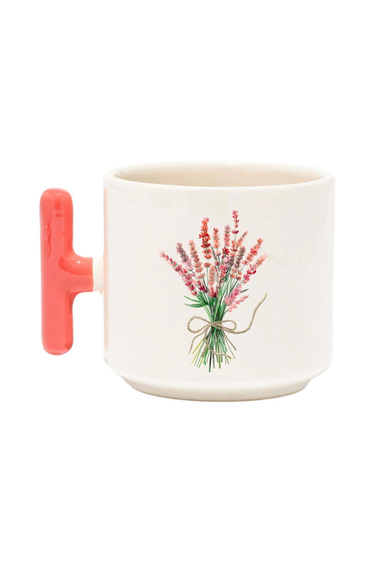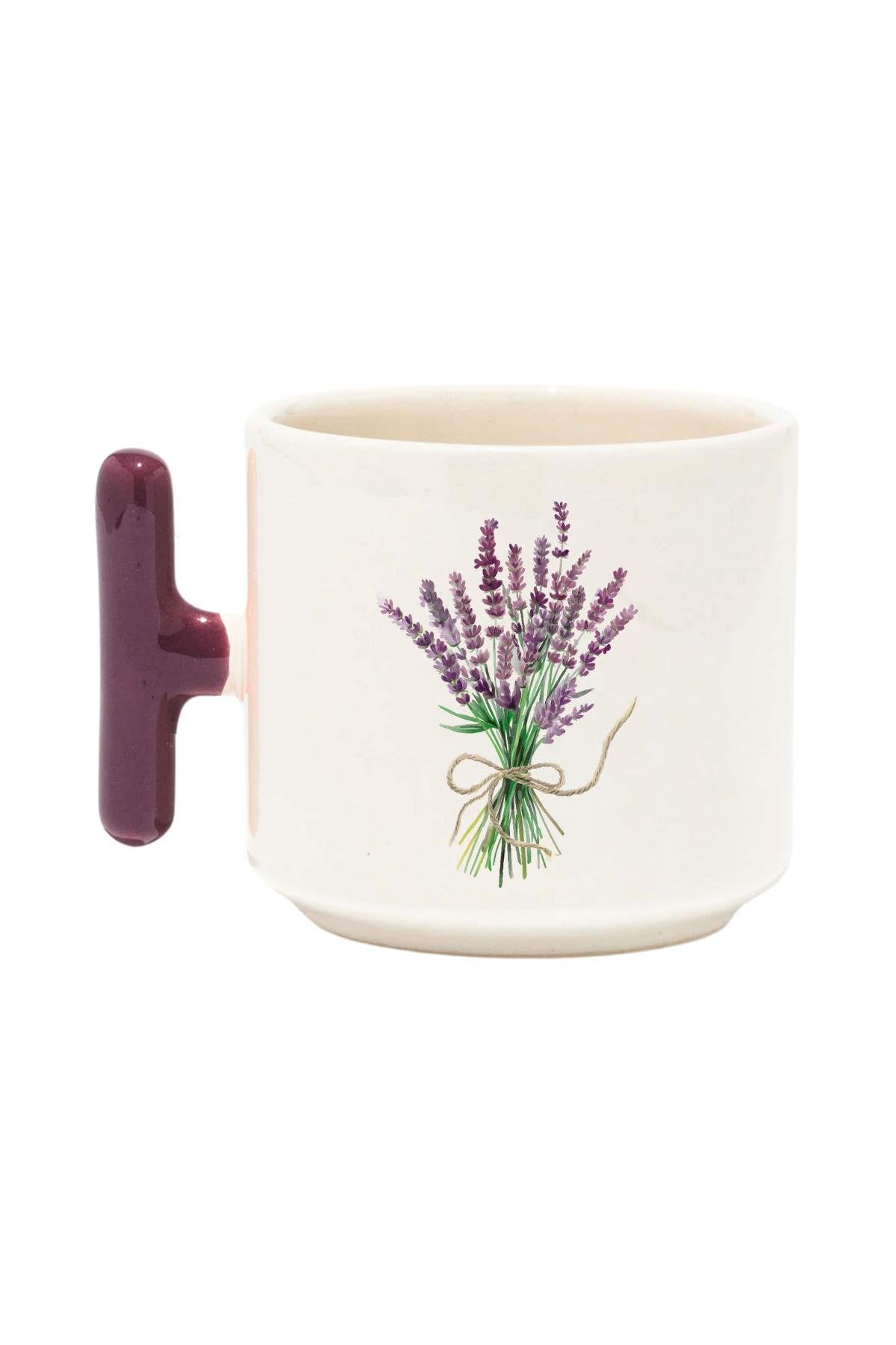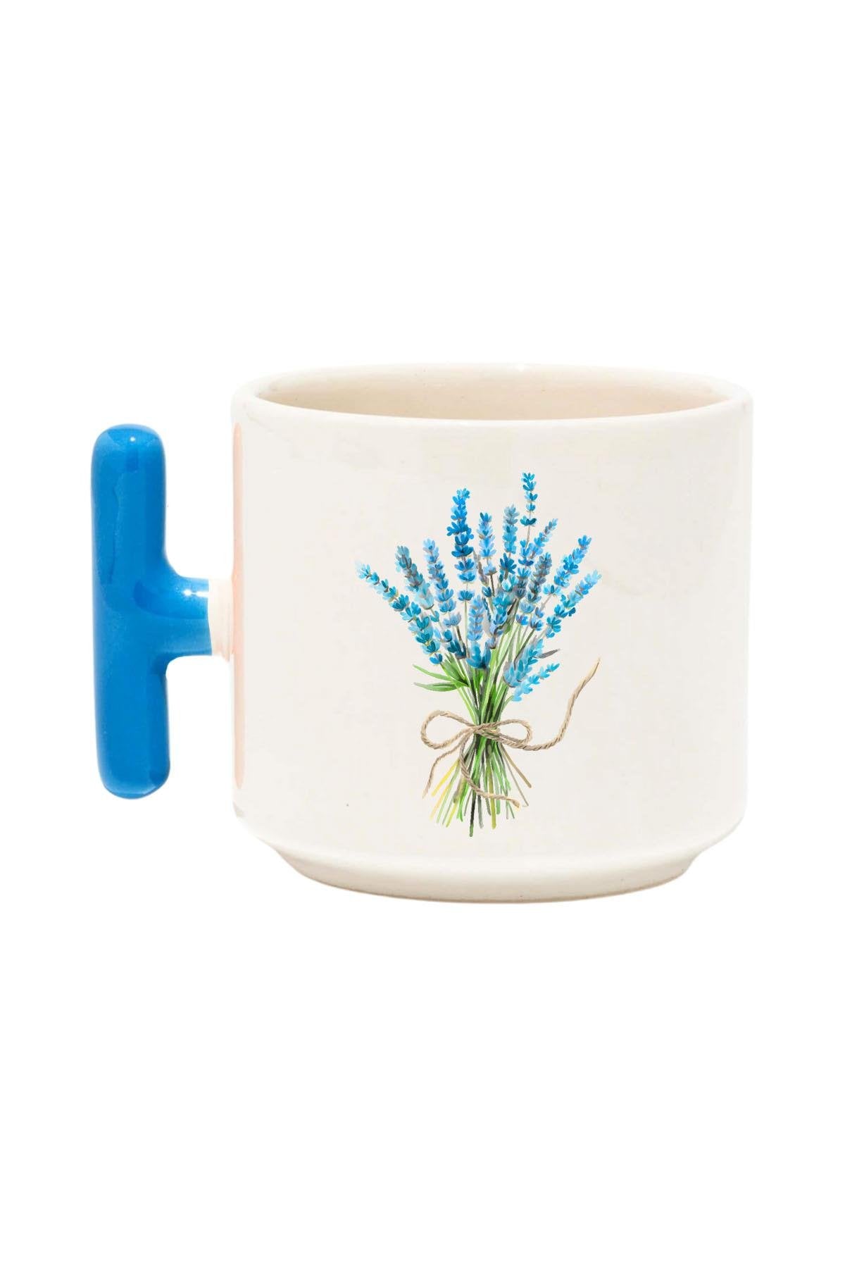 Lavanta Buketi Baskılı Renkli T Kulplu Hediyelik Latte Fincanı Kupa Bardak