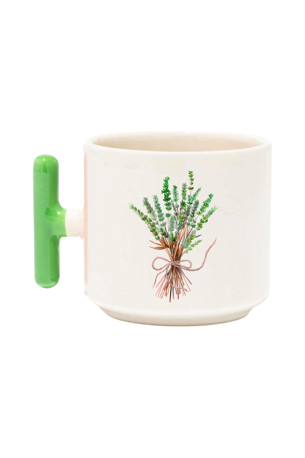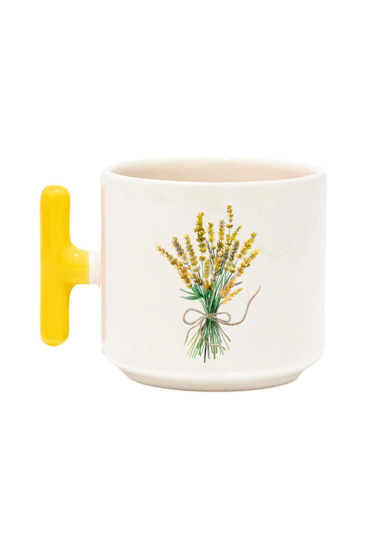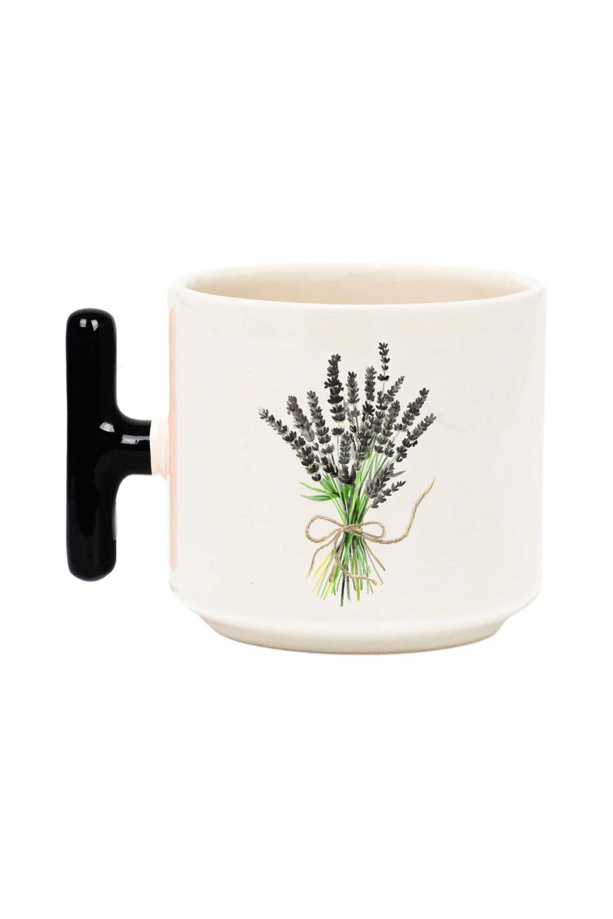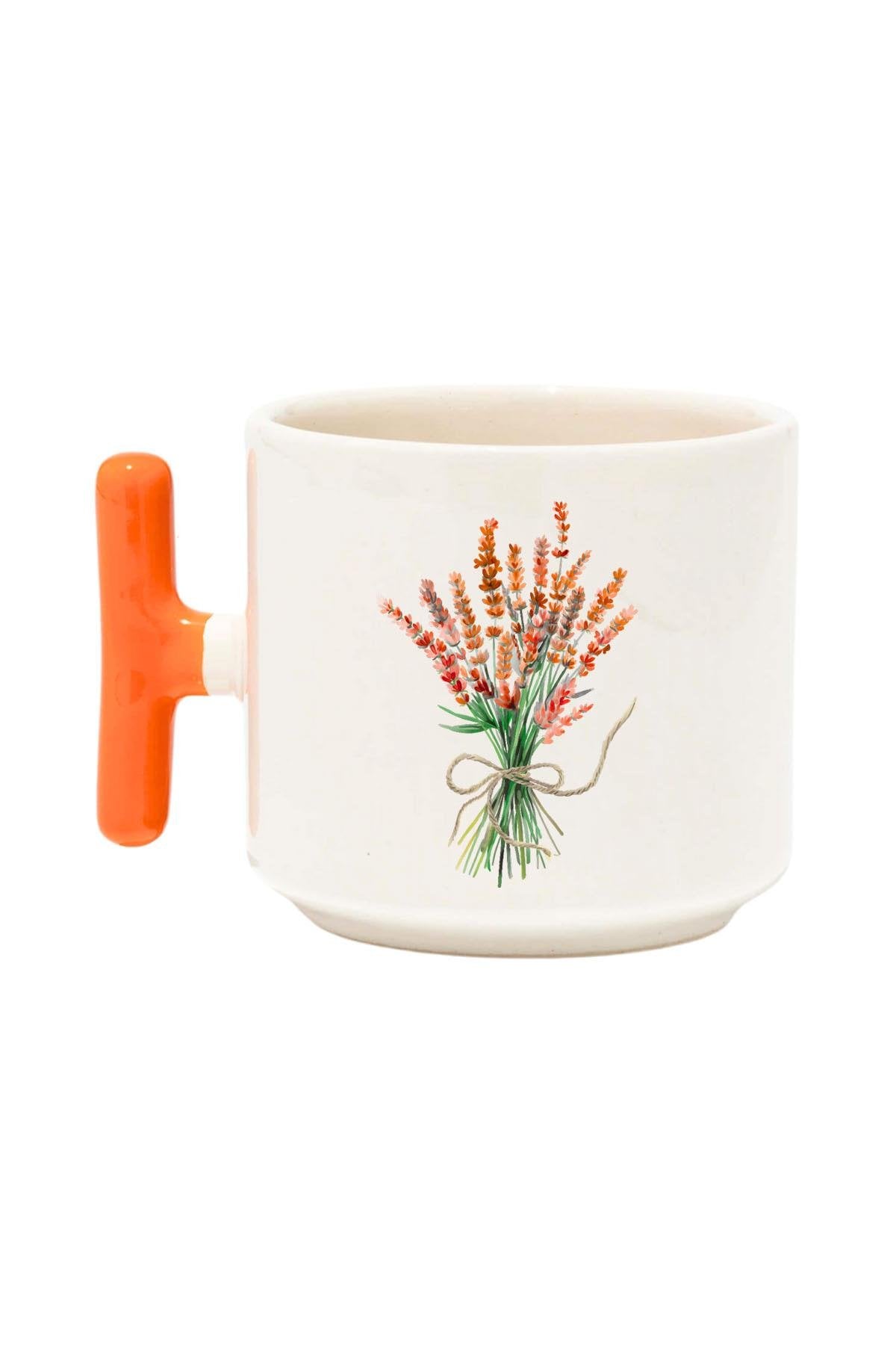 Lavanta Buketi Baskılı Renkli T Kulplu Hediyelik Latte Fincanı Kupa Bardak