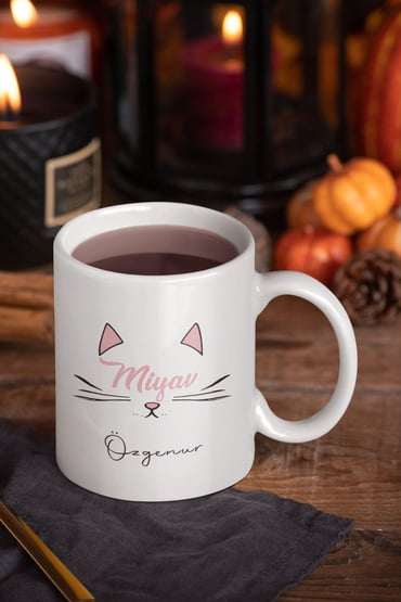 Miyav Sevimli Kedi İsme Özel Kişiselleştirilebilir Baskılı Kupa Bardak