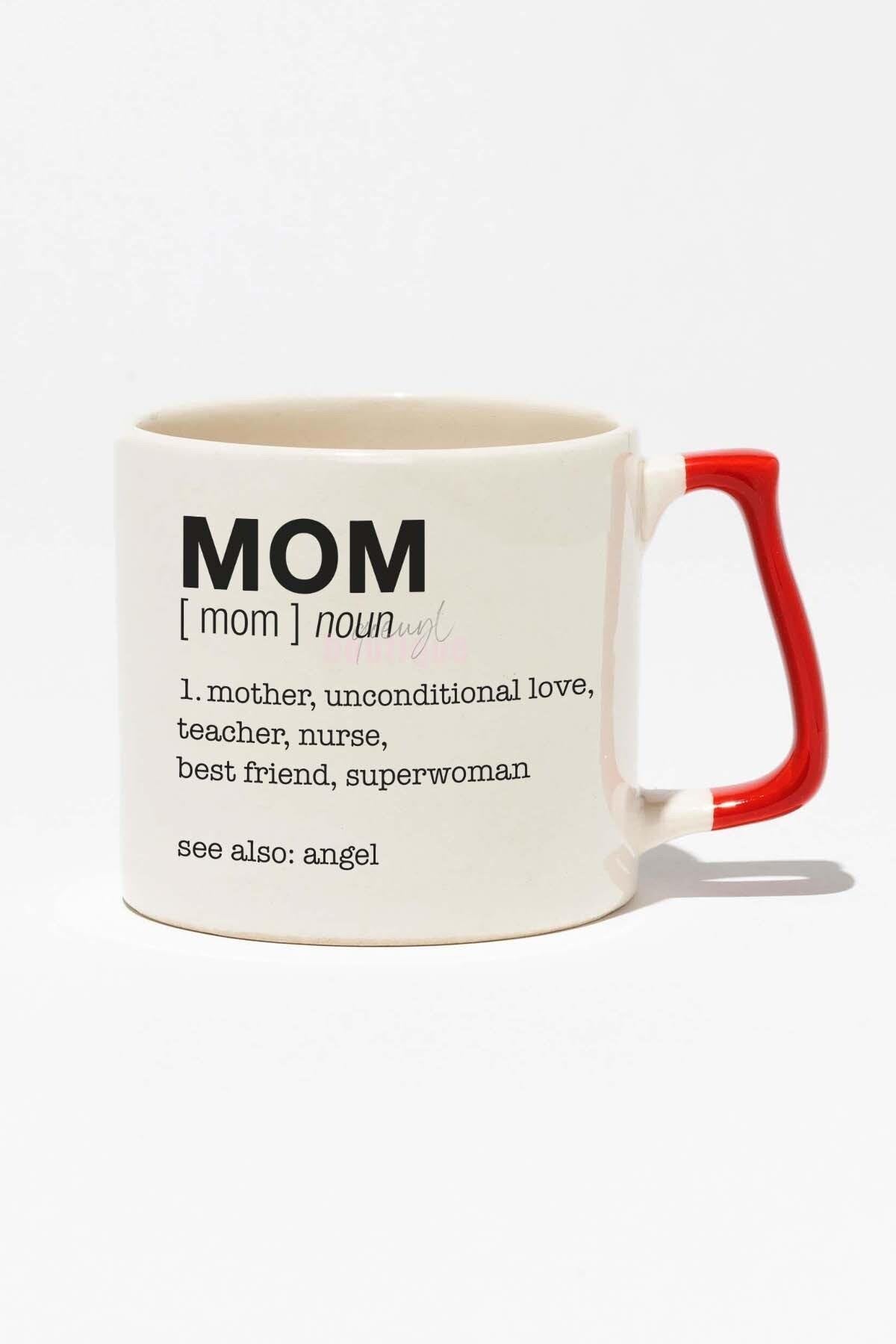 Mom Anneler Günü Anne Hediye Baskılı Kırmızı Kulplu Modern Seramik Kupa