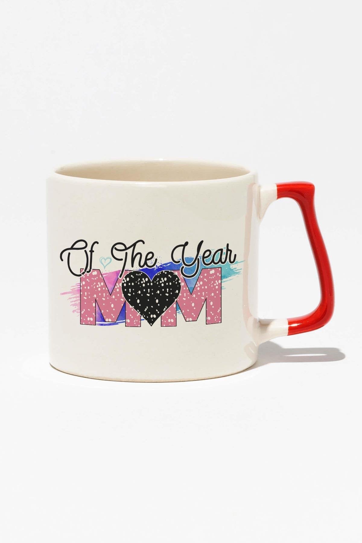 Mom Of The Year No:2 Baskılı Anneler Günü Hediyelik Kırmızı Kulplu Modern Seramik Kupa
