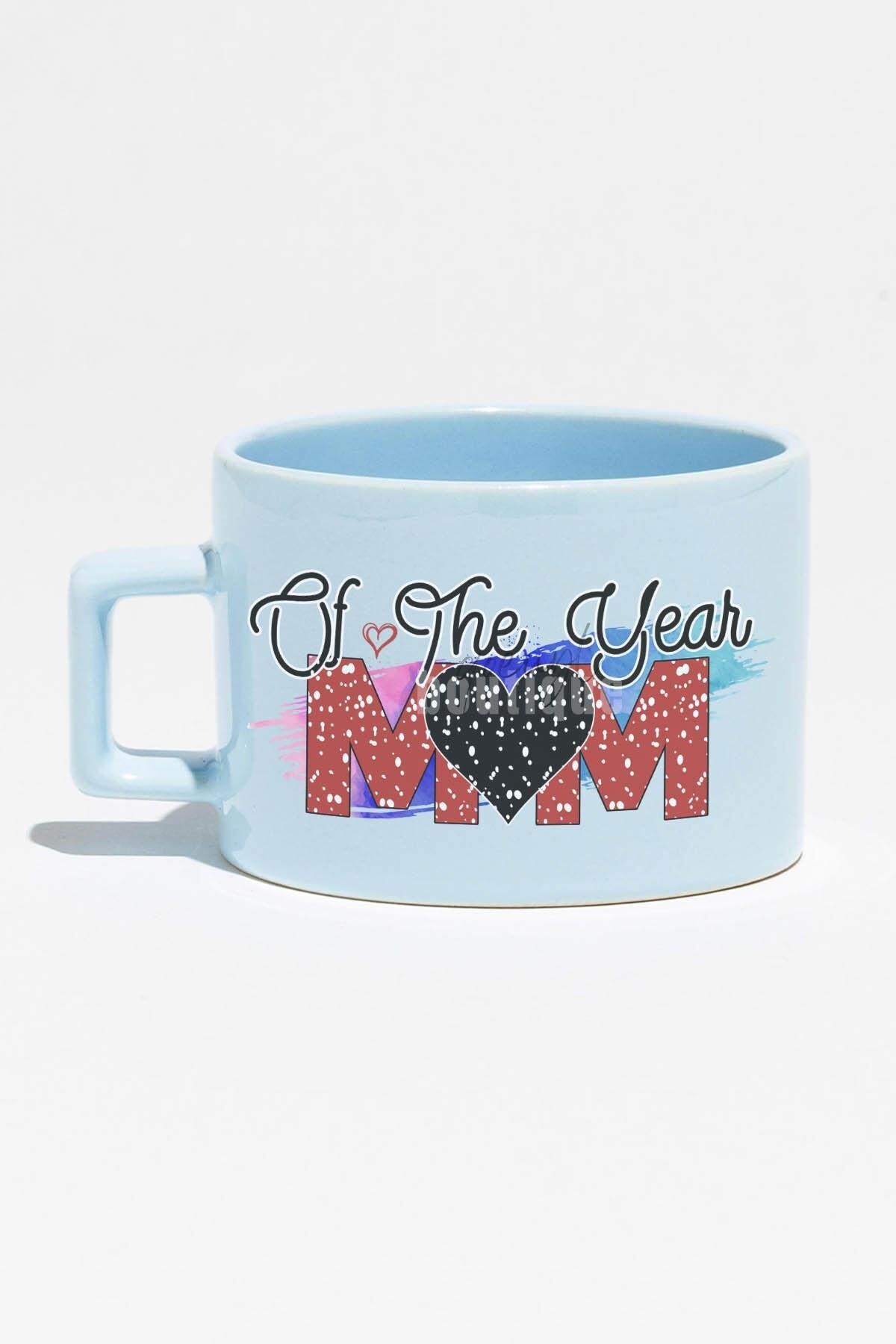 Mom Of The Year No:2 Baskılı Anneler Günü Hediyelik Mavi Dikdörtgen Kulplu Fincan Kupa Bardak